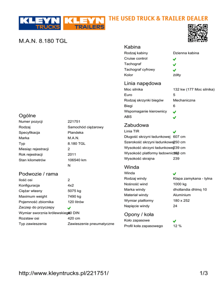 http://www.kleyntrucks.pl/221751/ 1/3 M.A.N. 8.180 TGL