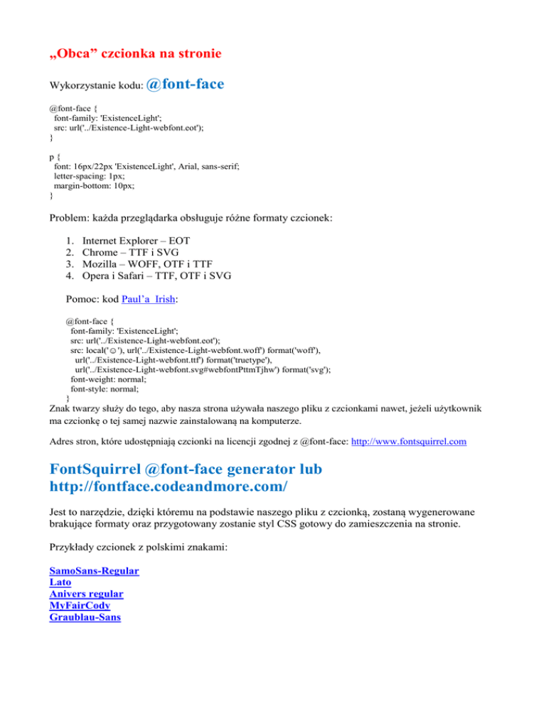 Wykorzystanie kodu: @font-face