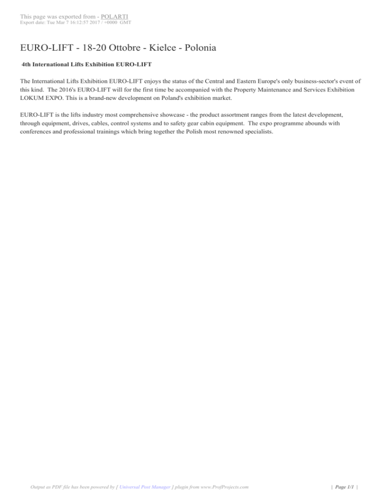 EURO-LIFT - 18-20 Ottobre - Kielce - Polonia