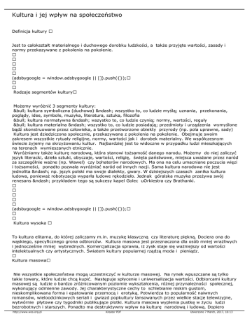 Internetu oraz poziomu oświaty. Kultura masowa nazywana jest kulturą czasu wolnego. Uczestniczą w
