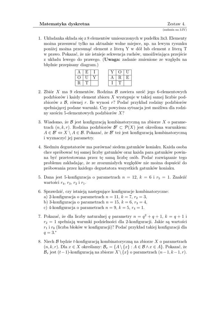 Matematyka dyskretna Zestaw 4. 1. Układanka składa się z 8