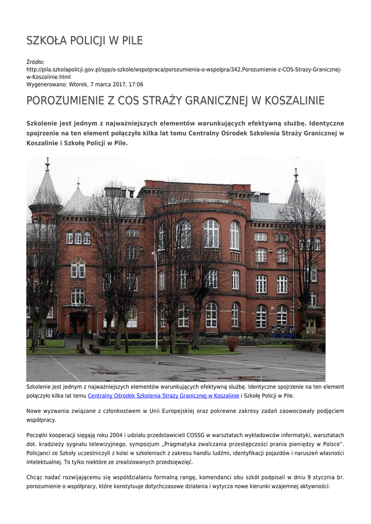 SZKOŁA POLICJI W PILE POROZUMIENIE Z COS STRAŻY