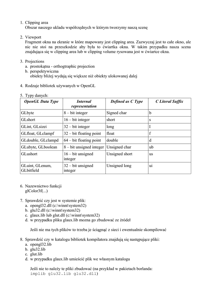 4. Rodzaje bibliotek używanych w OpenGL