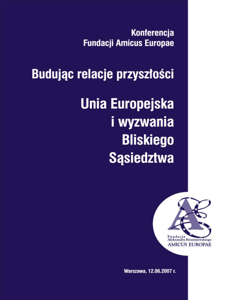 Konferencja Fundacji Amicus Europae Budując relacje przyszłości Unia Europejska i wyzwania Bliskiego Sąsiedztwa Warszawa, 12 czerwca 2007 r. Budując.... 4 Budując relacje przyszłości. Unia Europejska i wyzwania bliskiego sąsiedztwa. 12 czerwca 2007 r. Hotel Hilton, W arszawa, ul. Grzybowska 63 Warszawa, Otwarcie K onferencji – Andrzej Majkowski (Prezes Zarządu, Fundacja Amicus Europae) Konferencji Prezentacja Inicjatywy Bliskiego Sąsiedztwa – Aleksander Kwaśniewski W yzwania Bliskiego Sąsiedztwa Vaclav Havel (b. Prezydent Republiki Czeskiej) – transmisja telewizyjna z Pragi; Jaroslav Neverovic ` (Minister, specjalny wysłannik Prezydenta Litwy); Rudolf Schuster (b. Prezydent Republiki Słowackiej); Ion Iliescu (b. Prezydent Rumunii) – transmisja telewizyjna z Bukaresztu. Dyskusja: pytania i odpowiedzi Europejska Polityka Sąsiedztwa – dokąd zmierzamy? Dyskusja Panelowa Moderacja: Adam Daniel Rotfeld (b. Minister Spraw Zagranicznych RP); Jutta Frasch (Minister Pełnomocny, Ambasada Niemiec w Polsce); Oleksandr Motsyk (Ambasador Ukrainy w Polsce); Alexander Duleba (Słowackie Stowarzyszenie Polityki Zagranicznej); Raimundas Lopata (Dyrektor Instytutu Stosunków Międzynarodowych i Nauk Politycznych, Litwa). Dyskusja: pytania i odpowiedzi Podsumowanie K onferencji – Aleksander Kwaśniewski Konferencji __________________ Niniejsza publikacja powstała przy wsparciu Wydawca: Fundacja Aleksandra Kwaśniewskiego AMICUS EUROPAE 5 Konferencja Fundacji Amicus Europae „Budując relacje przyszłości – Unia Europejska i wyzwania Bliskiego Sąsiedztwa” Konferencja „Budując relacje przyszłości. Unia Europejska i wyzwania bliskiego sąsiedztwa” odbyła się w Warszawie w dniu 12 czerwca 2007 r. Był to drugi projekt Fundacji Amicus Europae poświęcony reformie Europejskiej Polityki Sąsiedztwa Unii Europejskiej. Konferencję otworzył Prezes Zarządu Fundacji Amicus Europae, Andrzej Majkowski, wyrażając nadzieję, iż temat polityki bliskiego sąsiedztwa wywoła międzynarodową dyskusję i pomoże rozwiązać problemy związane z przekształceniami polityczno-społeczno-ekonomicznymi Europy Środkowo-Wschodniej oraz współpracy z Unią Europejską. Konferencja składała się z dwóch części, podzielonych dodatkowo na panele tematyczne. Pierwszą z nich rozpoczęły wystąpienia Aleksandra Kwaśniewskiego i Rudolfa Schustera (b. Prezydenta Republiki Słowacji), po których wyemitowano nagrania z przemówieniami Prezydenta Czech Vaclava Havla i b. Prezydenta Rumunii Iona Iliescu. Głos zabrał także wiceminister spraw zagranicznych ` który odczytał zebranym Litwy Jaroslav Neverovic, posłanie od Prezydenta Litwy Valdasa Adamkusa. Druga część miała charakter moderowanej dyskusji panelowej pod kierownictwem Prof. Adama Daniela Rotfelda, której uczestnicy starali się udzielić odpowiedzi na pytanie dokąd zmierza Europejska Polityka Sąsiedztwa. Swoje stanowisko przedstawili: Jutta Frasch (Ambasada Niemiec w Polsce), Ambasador Ukrainy w Polsce Oleksandr Motsyk, Aleksander Duleba (Słowackie Stowarzyszenie Polityki Zagranicznej) oraz Raimundas Lopata (Dyrektor Instytutu Stosunków Międzynarodowych i Nauk Politycznych na Litwie). 6 Część I OTWARCIE KONFERENCJI Wystąpienie b. Prezydenta RP Aleksandra Kwaśniewskiego W itam Państwa serdecznie na konferencji pt. „Budując relacje przyszłości – Unia Europejska i wyzwania Bliskiego Sąsiedztwa”, którą Fundacja Amicus Europae organizuje dzięki wsparciu naszego najsławniejszego – chociaż, co należy podkreślić, nie jedynego sponsora – ukraińskiej Fundacji Wiktora Pinczuka. Fundacja ta wspiera Program Europejski Fundacji Amicus Europae, którego szczególnym punktem ciężkości są kwestie związane ze wschodnim sąsiedztwem Unii Europejskiej. W ramach tego programu nasza Fundacja będzie m.in. organizować publiczne debaty, konferencje i dyskusje ekspertów, publikować raporty i analizy oraz organizować „szkoły letnie” integracji europejskiej dla młodych liderów z państw Europy Wschodniej. Wszystkie te przedsięwzięcia Fundacji będą miały na celu popularyzację wiedzy na temat Unii w Polsce i na Wschodzie Europy, promocję wartości i standardów europejskich, eksport stabilności i dobrych praktyk na wschód od naszych granic. Będą także zmierzać ku upowszechnianiu idei dalszego rozszerzania na wschód Unii Europejskiej wśród naszych zachodnioeuropejskich partnerów. W momencie kiedy dwa z wielkich zamierzeń mojej Prezydentury – członkostwo Polski w NATO i Unii Europejskiej – stały się faktem, zadania te uznaję za moje najważniejsze zobowiązania międzynarodowe. Inicjatywa Bliskie Sąsiedztwo, którą dziś Państwu prezentujemy, jest zbiorem politycznych propozycji w zakresie reformy Europejskiej Polityki Sąsiedztwa Unii Europejskiej. Ma ona na celu pobudzenie międzynarodowej dyskusji na temat najlepszych form i metod wsparcia dla procesu transformacji polityczno-ekonomicznej obszaru Europy Wschodniej oraz formuły stosunków rozszerzonej UE z jej wschodnimi sąsiadami. Szanowni Państwo! Na przestrzeni ostatnich kilku miesięcy w państwach Europy Środkowej i Wschodniej mają miejsce procesy potwierdzające wcześniej wyrażane obawy, że przedłużający się marazm i paraliż polityczny w zakresie relacji Unii Europejskiej z jej wschodnimi sąsiadami zaczyna mieć bardzo niekorzystny wpływ na sytuację międzynarodową w tej części Europy. Z dużym niepokojem obserwujemy wydarzenia na Ukrainie, gdzie na skutek dezintegracji obozu „pomarańczowych” doszło do eskalacji napięcia i konfliktu z główną siłą opozycji, Partą Regionów Wiktora Janukowycza. Obserwując z troską wydarzenia w Kijowie, mamy nadzieję na pokojowe rozwiązanie tego politycznego sporu. Tak jak w 2004 roku, tak i dzisiaj Ukraina potrzebuje jednak szczególnej aktywności Unii Europejskiej, która z racji swojego potencjału i wiarygodności może stać się katali