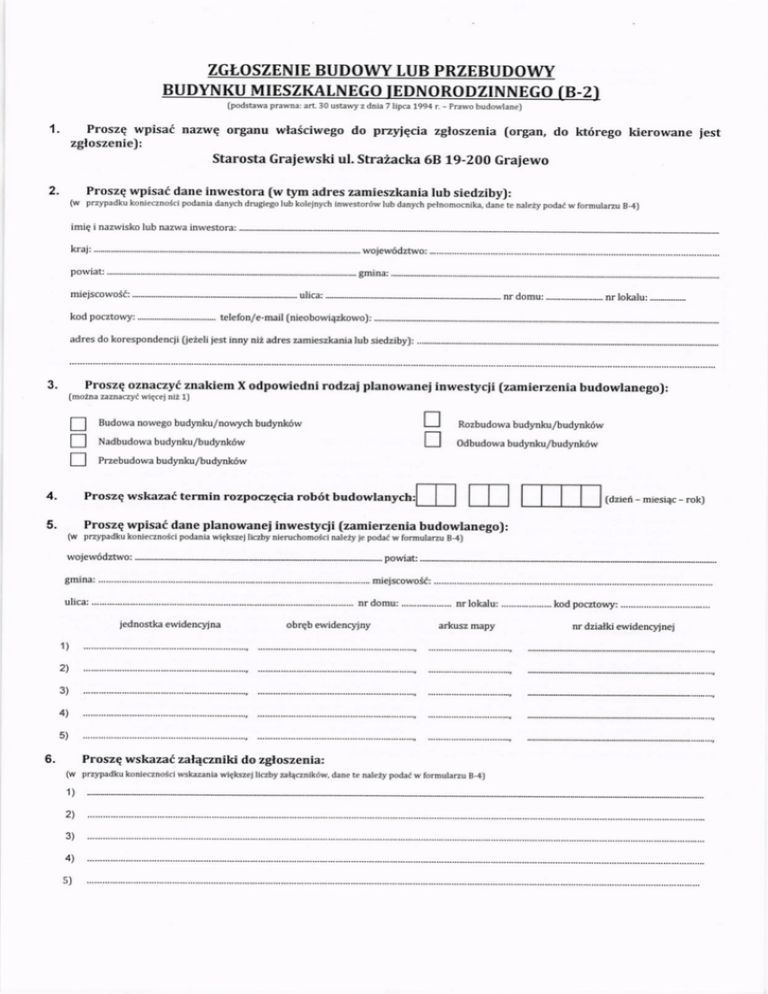 ZGLOSZENIE BUDOWY LUB PRZEBUDOWY