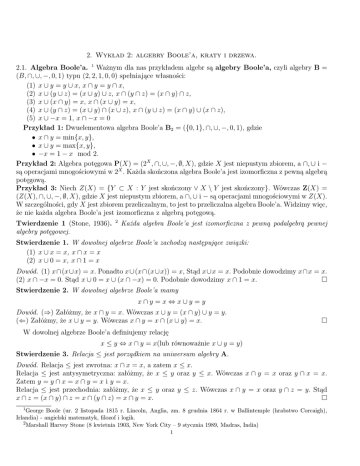 2. Wykład 2: algebry Boole’a, kraty i drzewa.