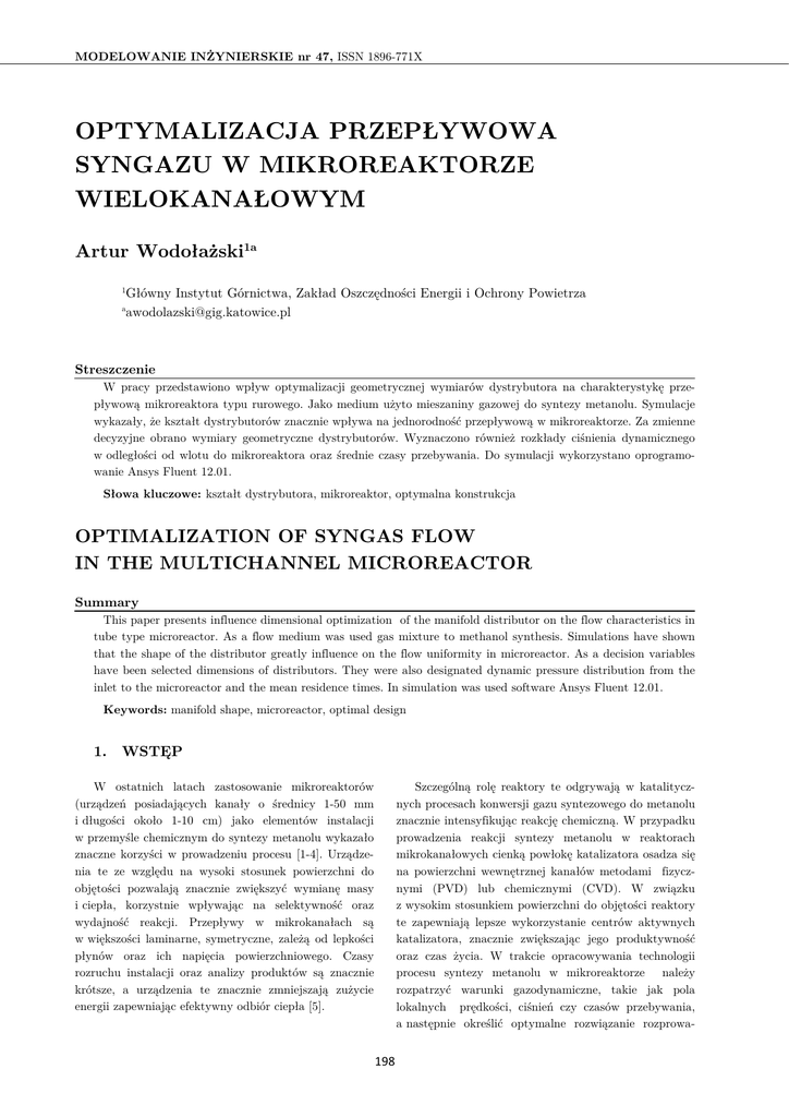 optymalizacja przepływowa syngazu w mikroreaktorze