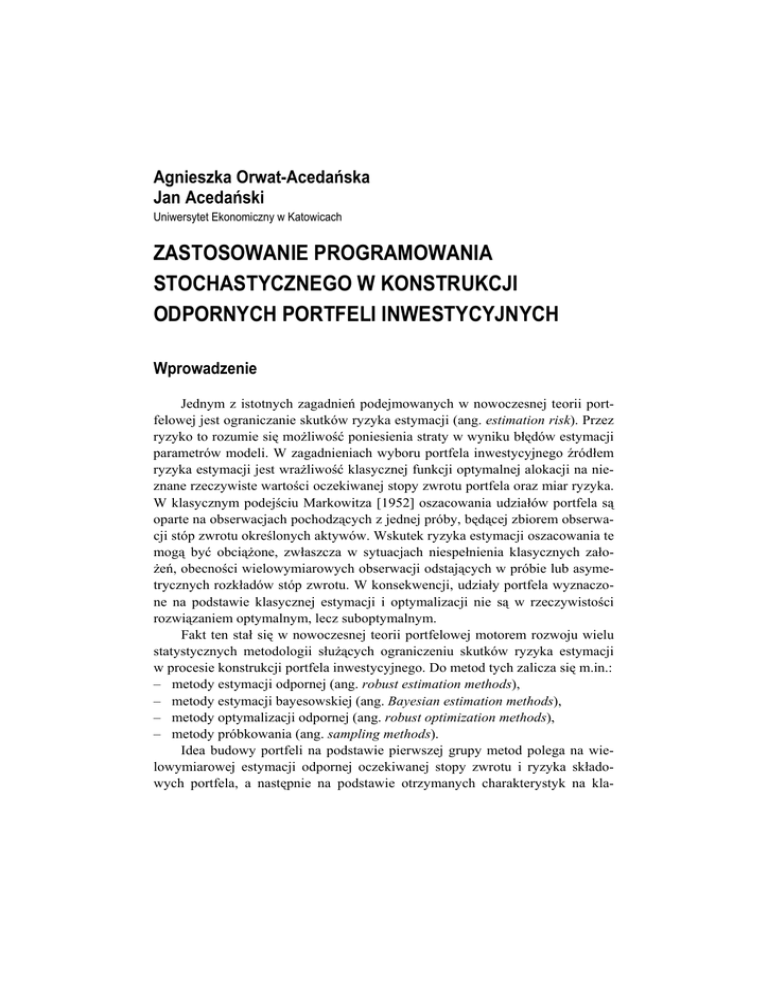 budowy portfeli inwestycyjnych uwzględniających ryzyko estymacji. Niestety wiele