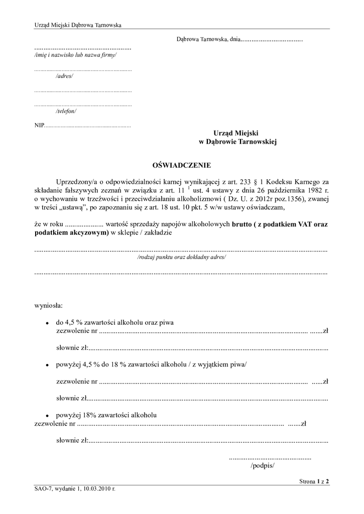 !"!# ! $%&'!()* +,- $%&'%. !/"0 1111111111111111111111111111111111111111111111111111111111111111 %2/3( 1111111111111111111111111111111111111111111111111111111111111111 1111111111111111111111111111111111111111111111111111111111111111 43+3. *$ 567111111111111111111111111111111111111111111111111111111111 Urząd Miejski w Dąbrowie Tarnowskiej OŚWIADCZEIE 89: = 9 : : : ;< ;>?@AB > >= >CD<=;DBE?>FGD HB: ?<I C@?DHBIJG<I ; B K LMM N O P9>=<HQR: PB ?<S> ;:B QHTB=B?D< UBTQ;@C@GV ;<;?BW C ;CDJ;HR ; B K OO X RQK Y RQKBC@ ; 8=?DB LZ :B[= ;D< ?DHB O\]L : 9: 9 B?DR C K ;<[C>FGD D ;<GDC=;DBTB?DR BEH>V>ED;^>CD _ `; ; LaOL >;OMbZcd ;CB?<I > C@GV>C : 9 9 : 9 C K <FGD eRQKBCJfd > ;B >;?B?DR QDg ; B K O] RQK Oa HK b CAC RQKBC@ >FCDB=G;B^d h< C :>HR CB:K>Fi Q9:;<=Bh@ ?B9>IjC BEH>V>E>C@GV brutto ( z podatkiem VAT oraz E<9D< A ;BHTB=;D< C QH podatkiem akcyzowym) /*2&%k l ,$)4, */%& 2*)m%2$0 %2/3( C@?D>QTBn : : 9 o => Ydb p ;BC:B K>FGD BEH>V>ER > B; DCB ;<;C>E<?D< ? ;T QT>C?D< ;T n 9 : 9 o >C@h<I Ydb p => O] p ;BCB K>FGD BEH>V>ER A ; C@IJKHD<^ DCBA : ;<;C>E<?D< ? ;T QT>C?D< ;T 9 : o >C@h:<I O]p ;BCB K>FGD BEH>V>ER ;<;C>E<?D< ? ;T QT>C?D< ;T n A9>=9DQA 1 2 >RG;<?D< n 9 9: : : B= >CD??> @i ;<HB;B?< do dnia HBh=<S> >HR H9BE<?=B ;>C<S> O FCD 31 stycznia 9: 9G;<?D< 9: 9 : 9 B= B= B =;DBTBE?>FGD S>Q >=B G;<I ?B >=QKBCD< R^>C@ Q jTHD G@CDE?<I L 9 =9;@ HR K >C ;<?D 9 > DQ@ CQ;@Q HDGV CQ9 jE?DHjC CD??@ @i ;T>h>?< ?B >FCDB=G;<?DR : 9: 9B= C ;@ HR: ?D< ;T>h<?DB : M S>=?D< ; B K O] RQK HK OL CAC 9RQKBC@ zezwolenie wygasa : : BE =>H>?B?DB > TBK@ >H <FE>?<I C B K OOX RQK L D b C K< ^D?BGV > HKj @GV >FCDB=G;<?D :K R ?D< B B ^>C C : OOX RQK 9 9: 9B= 9: = KB C ;@ HR ;< Q : CD<?DB Y S>=?D< ; B K O] RQK Oa HK b CC RQKBC@: zezwolenie cofaBsię 9: 9 B =B B= B =Bh Ij BE U9 TQ;@C@GV ?@GV C >FCD G;<?DR > C K>FGD Q ;< @ ? > C H>V>E>C@GV C >HR 9: = > ;< ?D^ 2 2 !"!# ! $%&'!()* +,- $%&'%. !/"0 1111111111111111111111111111111111111111111111111111111111111111 %2/3( 1111111111111111111111111111111111111111111111111111111111111111 1111111111111111111111111111111111111111111111111111111111111111 43+3. *$ 567111111111111111111111111111111111111111111111111111111111 Urząd Miejski w Dąbrowie Tarnowskiej OŚWIADCZEIE 89: = 9 : : : ;< ;>?@AB > >= >CD<=;DBE?>FGD HB: ?<I C@?DHBIJG<I ; B K LMM N O P9>=<HQR: PB ?<S> ;:B QHTB=B?D< UBTQ;@C@GV ;<;?BW C ;CDJ;HR ; B K OO X RQK Y RQKBC@ ; 8=?DB LZ :B[= ;D< ?DHB O\]L : 9: 9 B?DR C K ;<[C>FGD D ;<GDC=;DBTB?DR BEH>V>ED;^>CD _ `; ; LaOL >;OMbZcd ;CB?<I > C@GV>C : 9 9 : 9 C K <FGD eRQKBCJfd > ;B >;?B?DR QDg ; B K O] RQK Oa HK b CAC RQKBC@ >FCDB=G;B^d h< C :>HR CB:K>Fi Q9:;<=Bh@ ?B9>IjC BEH>V>E>C@GV brutto ( z podatkiem VAT oraz E<9D< A ;BHTB=;D< C QH podatkiem akcyzowym) /*2&%k l ,$)4, */%& 2*)m%2$0 %2/3( C@?D>QTBn : : 9 o => Ydb p ;BC:B K>FGD BEH>V>ER > B; DCB ;<;C>E<?D< ? ;T QT>C?D< ;T n 9 : 9 o >C@h<I Ydb p => O] p ;BCB K>FGD BEH>V>ER A ; C@IJKHD<^ DCBA : ;<;C>E<?D< ? ;T QT>C?D< ;T 9 : o >C@h:<I O]p ;BCB K>FGD BEH>V>ER ;<;C>E<?D< ? ;T QT>C?D< ;T n A9>=9DQA 1 2 >RG;<?D< n 9 9: : : B= >CD??> @i ;<HB;B?< do dnia HBh=<S> >HR H9BE<?=B ;>C<S> O FCD 31 stycznia 9: 9G;<?D< 9: 9 : 9 B= B= B =;DBTBE?>FGD S>Q >=B G;<I ?B >=QKBCD< R^>C@ Q jTHD G@CDE?<I L 9 =9;@ HR K >C ;<?D 9 > DQ@ CQ;@Q HDGV CQ9 jE?DHjC CD??@ @i ;T>h>?< ?B >FCDB=G;<?DR : 9: 9B= C ;@ HR: ?D< ;T>h<?DB : M S>=?D< ; B K O] RQK HK OL CAC 9RQKBC@ zezwolenie wygasa : : BE =>H>?B?DB > TBK@ >H <FE>?<I C B K OOX RQK L D b C K< ^D?BGV > HKj @GV >FCDB=G;<?D :K R ?D< B B ^>C C : OOX RQK 9 9: 9B= 9: = KB C ;@ HR ;< Q : CD<?DB Y S>=?D< ; B K O] RQK Oa HK b CC RQKBC@: zezwolenie cofaBsię 9: 9 B =B B= B =Bh Ij BE U9 TQ;@C@GV ?@GV C >FCD G;<?DR > C K>FGD Q ;< @ ? > C H>V>E>C@GV C >HR 9: = > ;< ?D^ 2 2 !"!# ! $%&'!()* +,- $%&'%. !/"0 1111111111111111111111111111111111111111111111111111111111111111 %2/3( 1111111111111111111111111111111111111111111111111111111111111111 1111111111111111111111111111111111111111111111111111111111111111 43+3. *$ 567111111111111111111111111111111111111111111111111111111111 Urząd Miejski w Dąbrowie Tarnowskiej OŚWIADCZEIE 89: = 9 : : : ;< ;>?@AB > >= >CD<=;DBE?>FGD HB: ?<I C@?DHBIJG<I ; B K LMM N O P9>=<HQR: PB ?<S> ;:B QHTB=B?D< UBTQ;@C@GV ;<;?BW C ;CDJ;HR ; B K OO X RQK Y RQKBC@ ; 8=?DB LZ :B[= ;D< ?DHB O\]L : 9: 9 B?DR C K ;<[C>FGD D ;<GDC=;DBTB?DR BEH>V>ED;^>CD _ `; ; LaOL >;OMbZcd ;CB?<I > C@GV>C : 9 9 : 9 C K <FGD eRQKBCJfd > ;B >;?B?DR QDg ; B K O] RQK Oa HK b CAC RQKBC@ >FCDB=G;B^d h< C :>HR CB:K>Fi Q9:;<=Bh@ ?B9>IjC BEH>V>E>C@GV brutto ( z podatkiem VAT oraz E<9D< A ;BHTB=;D< C QH podatkiem akcyzowym) /*2&%k l ,$)4, */%& 2*)m%2$0 %2/3( C@?D>QTBn : : 9 o => Ydb p ;BC:B K>FGD BEH>V>ER > B; DCB ;<;C>E<?D< ? ;T QT>C?D< ;T n 9 : 9 o >C@h<I Ydb p => O] p ;BCB K>FGD BEH>V>ER A ; C@IJKHD<^ DCBA : ;<;C>E<?D< ? ;T QT>C?D< ;T 9 : o >C@h:<I O]p ;BCB K>FGD BEH>V>ER ;<;C>E<?D< ? ;T QT>C?D< ;T n A9>=9DQA 1 2 >RG;<?D< n 9 9: : : B= >CD??> @i ;<HB;B?< do dnia HBh=<S> >HR H9BE<?=B ;>C<S> O FCD 31 stycznia 9: 9G;<?D< 9: 9 : 9 B= B= B =;DBTBE?>FGD S>Q >=B G;<I ?B >=QKBCD< R^>C@ Q jTHD G@CDE?<I L 9 =9;@ HR K >C ;<?D 9 > DQ@ CQ;@Q HDGV CQ9 jE?DHjC CD??@ @i ;T>h>?< ?B >FCDB=G;<?DR : 9: 9B= C ;@ HR: ?D< ;T>h<?DB : M S>=?D< ; B K O] RQK HK OL CAC 9RQKBC@ zezwolenie wygasa : : BE =>H>?B?DB > TBK@ >H <FE>?<I C B K OOX RQK L D b C K< ^D?BGV > HKj @GV >FCDB=G;<?D :K R ?D< B B ^>C C : OOX RQK 9 9: 9B= 9: = KB C ;@ HR ;< Q : CD<?DB Y S>=?D< ; B K O] RQK Oa HK b CC RQKBC@: zezwolenie cofaBsię 9: 9 B =B B= B =Bh Ij BE U9 TQ;@C@GV ?@GV C >FCD G;<?DR > C K>FGD Q ;< @ ? > C H>V>E>C@GV C >HR 9: = > ;< ?D^ 2 2