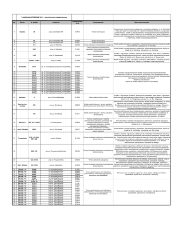 Lp. Obręb Nr działki Położenie Powierzchnia w ha Przeznaczenie