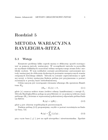 z zasad¡ wariacyjn¡ Rayleigha-Ritza warto±ci oczekiwane operatora Hamiltona, czyli warto±ci ilorazu Rayleigha