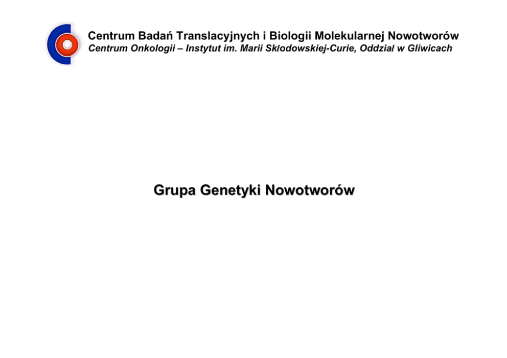 Grupa Genetyki Nowotworów - Centrum Badań Translacyjnych i