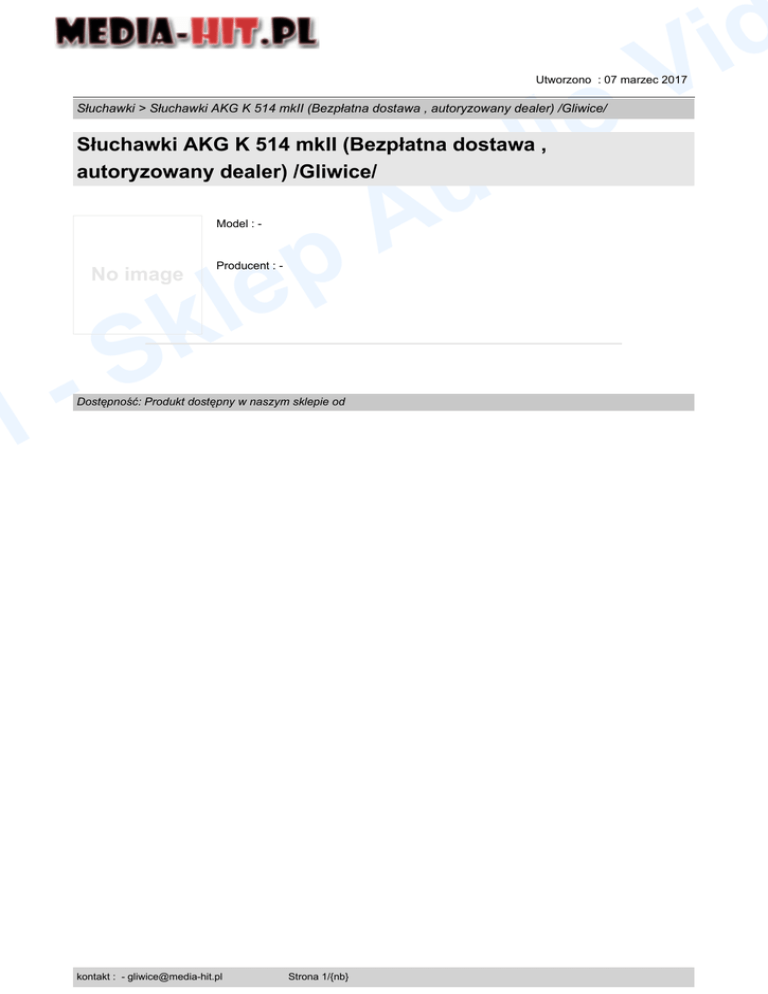 o i d d i V Utworzono : 07 marzec 2017 Słuchawki > Słuchawki AKG K 514 mkII (Bezpłatna dostawa , autoryzowany dealer) /Gliwice/ Słuchawki AKG K 514 mkII (Bezpłatna dostawa , autoryzowany dealer) /Gliwice/ p le Model : - No image l p Producent : - k S Dostępność: Produkt dostępny w naszym sklepie od kontakt : - [email protected] Strona 1/{nb} u A