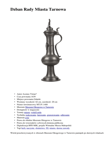 Dzban Rady Miasta Tarnowa - Wirtualne Muzea Małopolski