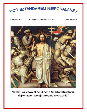 Kwiecień 2015 Czasopismo rzymskokatolickie Nr 4 (60) 2015 "Przez Twe chwalebne Chryste Zmartwychwstanie, daj w łasce Twojej stateczne wytrwanie" 1 "Konieczne było Zmartwychwstanie Chrystusa, nie tylko dla publicznego okazania sprawiedliwości Bożej, dla uformowania naszej wiary, i podźwignięcia naszej nadziei, lecz także dla ukształtowania życia wiernych, i dla uwieńczenia naszego zbawienia". (Św. Tom asz z Akwinu, Summa teologiczna, III, q. 51, a. 1. Konkluzja). Spis treści Na dzień Wielkiejnocy ............................................................................................................................. 3 Ks. Jakub Wujek Nauka na drugą niedzielę po Wielkanocy. – O wytrwaniu w dobrem ............................................ 8 Św. Jan Maria Vianney Cześć Maryi. Ćwiczenie się w cnotach z miłości ku Maryi. – Czystość ......................................... 14 Ks. Jakub Górka Za Przyczyną Maryi. – Zlecenie Maryi ................................................................................................ 20 "Róża Duchowna" Chrześcijańska filozofia życia. – Myśli na czas Wielkanocny .......................................................... 22 O. Tilmann Pesch SI Utarczka duchowa. – O podstępach, jakie nieprzyjaciel duszy zwykł czynić dla sprowadzenia nas z drogi cnoty ..................................................................................................................................... 25 Ks. Wawrzyniec Scupoli Nauki katolickie w sposób katechizmowy. – Indyferentyści ........................................................... 28 Mały katechizm o Nieomylności Najwyższego Pasterza. – Co to jest nieomylność Papieża? I kiedy tej nieomylności nie ma ............................................................................................................... 29 2 POSTYLLA KATOLICKA MNIEJSZA KS. JAKUB WUJEK SI –––––––– Na dzień Wielkiejnocy Ewangelia o Pańskim Zmartwychwstaniu, u Marka w 16 Rozdz. (w. 1-7). WYKŁAD Święto dzisiejsze chwalebne i wesołe tak dalece przechodzi i przewyższa wszystkie inne święta, jako słońce gwiazdy. Albowiem próżnoby się był Pan Chrystus narodził, próżnoby się był dał obrzezać, ochrzcić i kusić na puszczy, próżnoby był pościł, uczył i przepowiadał ewangelię swoją, i owszem próżnoby był cierpiał, umęczon i umarł, gdyby był wnet potem nie zmartwychwstał. Bo któżby był uwierzył, że nas Ten od śmierci wybawił, który sam od śmierci był pojman? Ktoby wierzył, żeby nas ten miał wyrwać z piekła, który sam z piekieł nie wyszedł? Ktoby wierzył, iż ten ma ożywić ciała nasze, gdyby się Jego samego ciało w proch było rozsypało? (1). Ale teraz wiedząc pewnie, iż dusza Jego nie została w piekle i ciało Jego nie uznało skażenia, wierzymy też pewnie, że nas takoż od grzechów, od śmierci i od piekła wybawił, i naprawi czasu swego nasze skazitelne ciała (2). Przetoż jeśli wielkie było wesele z Pańskiego narodzenia, większe teraz ma być ze zmartwychwstania Jego. Albowiem tam się narodził w ubóstwie i w nędzy, ale teraz odrodził się w chwale, tam w ciele cierpieniu poddanym, ale tu już w ciele uwielbionym, tam się narodził, aby wszystkie męki i zelżywości cierpiał, ale tu zmartwychwstał, aby był podwyższony i chwalon od wszego stworzenia (3). Albowiem dana mu jest wszystka moc na niebie i na ziemi (4). A tak radujmy się i weselmy się wszyscy, ale duchownym, a nie cielesnym weselem, nie przez to, że się post dokonał, że się mięso do nas nawróciło, ale przeto, że Pan Chrystus grzechy nasze zgładził, śmierć umorzył, czarta zwyciężył, piekło zburzył i przywrócił nam dobra utracone, grzechów odpuszczenie usprawiedliwienie, ciała zmartwychwstanie i żywot on wieczny. Ale już przystąpmy do ewangelii św., a obaczmy naprzód, komu najpierwej Pan Chrystus objawić raczył zmartwychwstanie swoje, a potem, co za pożytki przyniosło Pańskie zmartwychwstanie i jako z Panem z martwych powstać mamy. Wszyscy ewangelistowie zgadzają się na to, że Pan Chrystus najpierwej białogłowom oznajmić raczył zmartwychwstanie swoje, a to dlatego, iż one nad 3 insze Chrystusa miłowały i z większą pilnością go szukały. Albowiem wielkie nabożeństwo i miłość ku Panu Jezusowi tych to świętych niewiast okazuje się nie słowy tylko, ale wielkimi a znacznymi uczynkami, bo miłowały Pana Chrystusa za żywota, nie odstąpiły go przy śmierci, i po śmierci miłować nie przestały (4). Za żywota naśladowały go z Galilei, a opuściwszy ojczyznę i przyjacioły swoje, bawiły się przy nim, szukając zawsze słowa i nauki Jego, i jeszcze nad to, z majętności swoich służyły mu i dodawały mu potrzeb i uczniom Jego. Przy śmierci zasię Jego wielką miłość swoją w tym okazały, że gdy uczniowie jego wszyscy pouciekali, gdy go opuścili, a niektórzy się go i zaparli, gdy go na ostatek jako łotra nad łotry potępiono i ukrzyżowano, one go przecież nie tylko nie odstąpiły, ale i prowadziły, i pod krzyżem pospołu z Matką Jego i z Janem aż do końca trwały. Na koniec i po śmierci miłować nie przestały, gdy mu oto ostatnią posługę wyrządzić i ciało Jego święte maściami kosztownymi pomazać usiłowały, a nic się nie odstraszyły, ani bojaźnią książąt i przełożonych swych, ani żołnierzy zbrojnych, ani grobem pilnie opatrzonym i pieczętowanym, ani kamieniem wielkim, ani nocnymi ciemnościami, ani pracą i nakładem na one drogie maści. A choć dobrze wiedziały i widziały, że już ciało Jego święte było od ludzi świętych: od Józefa z Arymatei i od Nikodema pomazane, gdy je pogrzebali, wszakże nie mając dosyć na tym, chciały też i one namazać ciało Jego święte (5). Albowiem miłującemu zda się jakoby nic nie uczyniono, czego on sam nie uczyni temu, kogo miłuje. A patrz, jako miłującemu nic nie jest 