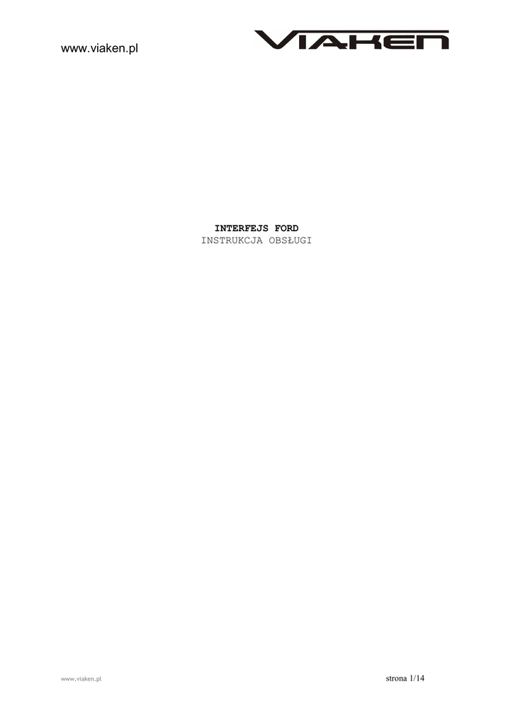 www.viaken.pl INTERFEJS FORD INSTRUKCJA OBSŁUGI www.viaken.pl strona 1/14 www.viaken.pl 1. BEZPIECZEŃSTWO PRACY Przed pierwszym uruchomieniem urządzenia naleŜy uwaŜnie przeczytać instrukcję obsługi. • Urządzenie przeznaczone jest do wykorzystania jedynie w pomieszczeniach zamkniętych • W przypadku nieprawidłowego działania lub stwierdzenia widocznego uszkodzenia nie wolno korzystać z urządzenia. W takim przypadku naleŜy zwrócić się do firmy Viaken • Nie wolno zanurzać urządzenia ani przewodów w wodzie lub innych płynach. • W przypadku gdy przewody połączeniowe zostały uszkodzone, nie wolno korzystać z urządzenia. • Mając na uwadze Państwa bezpieczeństwo zalecamy uŜywać do podłączenia jedynie kabli naszej produkcji (kaŜdy producent moŜe mieć inny standard wyprowadzeń) • Diagnostyka pojazdu moŜe być prowadzona wyłącznie przez przeszkolony personel. • Urządzeni moŜna podłączać do pojazdu wyłącznie poprzez dedykowane do tego celu gniazdo diagnostyczne. • Niedopuszczalne jest dokonywanie Ŝadnych zmian w instalacji elektryczne pojazdu oraz w elektronice urządzenia. • Podłączanie urządzenia do złącza diagnostycznego pojazdu naleŜy wykonywać tylko przy wyłączonym zapłonie. • Urządzenia w wersji z interfejsem szeregowym RS232 naleŜy podłączać do komputera tylko przy wyłączonym komputerze. Nie moŜna stosować adapterów USB/RS232. • Producent nie ponosi odpowiedzialności za skutki nieodpowiedniego korzystania lub nieprawidłowej obsługi. www.viaken.pl strona 2/14 www.viaken.pl 2.SPECYFIKACJA TECHNICZNA 2.1 WYMAGANIA SPRZĘTOWE Wymagania sprzętowe: • komputer klasy PC ( laptop , stacjonarny ) • procesor klasy Pentium lub lepszy • Karta graficzna pracująca w rozdzielczości 640 x 480 • Wolne gniazdo USB w komputerze PC • 10 MB wolnego miejsca na dysku. • Wymagania programowe • System operacyjny Windows 2.2 DANE TECHNICZNE Wymiary 115mm x 55m x 23mm Masa netto 150 do 300 g ( w zaleŜności od wersji ) Zakres temperatur podczas eksploatacji od 5°C do 40°C Zakres temperatur podczas składowania od -20°C do 60°C Napięcie zasilania od 12,5V do 15V (zasilanie ze złącza diagnostycznego) www.viaken.pl strona 3/14 www.viaken.pl 3. PODŁĄCZENIE INTERFEJSU DO KOMPUTERA PC Interfejs naleŜy podłączyć do gniazda USB w komputerze. Po podłączeniu interfejsu komputer wykryje nowe urządzenie USB i poprosi o sterowniki do niego. 3.1 Instalacja interfejsu Windows XP. NaleŜy wybrać opcje: „Nie, nie tym razem” Następnie wybieramy: „Zainstaluj z listy lub określonej lokalizacji”. www.viaken.pl strona 4/14 www.viaken.pl I klikając na „Przeglądaj” wskazujemy katalog na płycie ze sterownikami.(Uwaga, jeŜeli na płycie nie ma sterowników do interfejsu to znaczy, Ŝe naleŜy wskazać katalog programu, tam będą sterowniki) Komputer wykryje nowy port szeregowy. NaleŜy wybrać 3 opcje: „Nie, nie tym razem” www.viaken.pl strona 5/14 www.viaken.pl Następnie wybieramy: „Zainstaluj z listy lub określonej lokalizacji”. I klikając na „Przeglądaj” wskazujemy katalog na płycie ze sterownikami.(Uwaga, jeŜeli na płycie nie ma sterowników do www.viaken.pl strona 6/14 www.viaken.pl interfejsu to znaczy, Ŝe naleŜy wskazać katalog programu, tam będą sterowniki) I to juŜ wszystko :) interfejs zainstalowany. Tak wygląda MenedŜer urządzeń po instalacji interfejsu www.viaken.pl strona 7/14 www.viaken.pl UWAGA!!! Po instalacji naleŜy sprawdzić na którym wirtualnym porcie com jest zainstalowany interfejs, poniewaŜ program działa tylko i wyłącznie na portach com między 1-8. JeŜeli interfejs zainstalował się na innym porcie com naleŜy zmienić nr portu właśnie na prot com między 1-8. Aby to zrobić naleŜy kliknąć prawym przyciskiem myszy na zainstalowanym wirtualnym porcie com i wybrać... Wybieramy właściwości interfejsu W zakładce „port setting” klikamy na „advanced” www.viaken.pl strona 8/14 www.viaken.pl -Ustawimy port com2, -Odbiór Bajty:1024 -Taransmisja Bajty: 1024 -Czas opóźnienia: 1 4. PODŁĄCZENIE INTERFEJSU DO SAMOCHODU. www.viaken.pl strona 9/14 www.viaken.pl Interfejs naleŜy podłączyć do gniazda diagnostycznego w samochodzie. Interfejs współpracuje z samochodami marki Ford po 2002 roku wyposaŜonymi tylko w złącze diagnostyczne OBD2. Interfejs jest wbudowany we wtyk. Widok gniazda w samochodzie: Diagnozę samochodu naleŜy przeprowadzać na włączonym zapłonie lub zapalonym silniku. W pierwszej kolejności podłącza się interfejs do samochodu, dopiero później naleŜy włączyć zapłon. 5. Oprogramowanie. www.viaken.pl strona 10/14 www.viaken.pl Interfejs współpracuje z programem „FORmiDable”, który moŜna pobrać ze strony producenta: http://www.ozenelektronik.com/download.php?id=7005 5.1 Uruchomienie interfejsu. W programie wybieramy taki sam port com jak w menadrzeŜe urządzeń naleŜy w zakładce Setting ustawić port com między 1-8. www.viaken.pl strona 11/14 www.viaken.pl Następnie wybieramy (jak na zdjęciach poniŜej): 1. Model samochodu 2. System który chcemy diagnozować (PCM-silnik, TCM, ABS, AirBag) Live data- Odczyt parametrów bieŜących Read DTC- Odczyt kodów błędów Clear DTC- Kasowanie kodów błędów Read Injector- Czytaj wtryskiwacz Prog Injector- Koduj wtryskiwacz www.viaken.pl strona 12/14 www.viaken.pl www.viaken.pl strona 13/14 www.viaken.pl 6.POZOSTAŁE INFORMACJE Przyczyny braku transmisji: • konfiguracja wirtualnych portów szeregowych (koniecznie musi być ustawiony com między 1-8) • brak napięcia zasilania - wyłączniki ukryte i immobilizery powinny być rozbrojone, napięcie na zasilaniu powinno wynosić około 12,5V na włączonym zapłonie i około 13,5V na włączonym silniku • zakłócenia na linii transmisji przez uszkodzone sterowniki - naleŜy zmierzyć napięcie na linii transmisji - powinno być niŜsze o około 1,5-3,5V niŜ napięcie zasilania. • opro