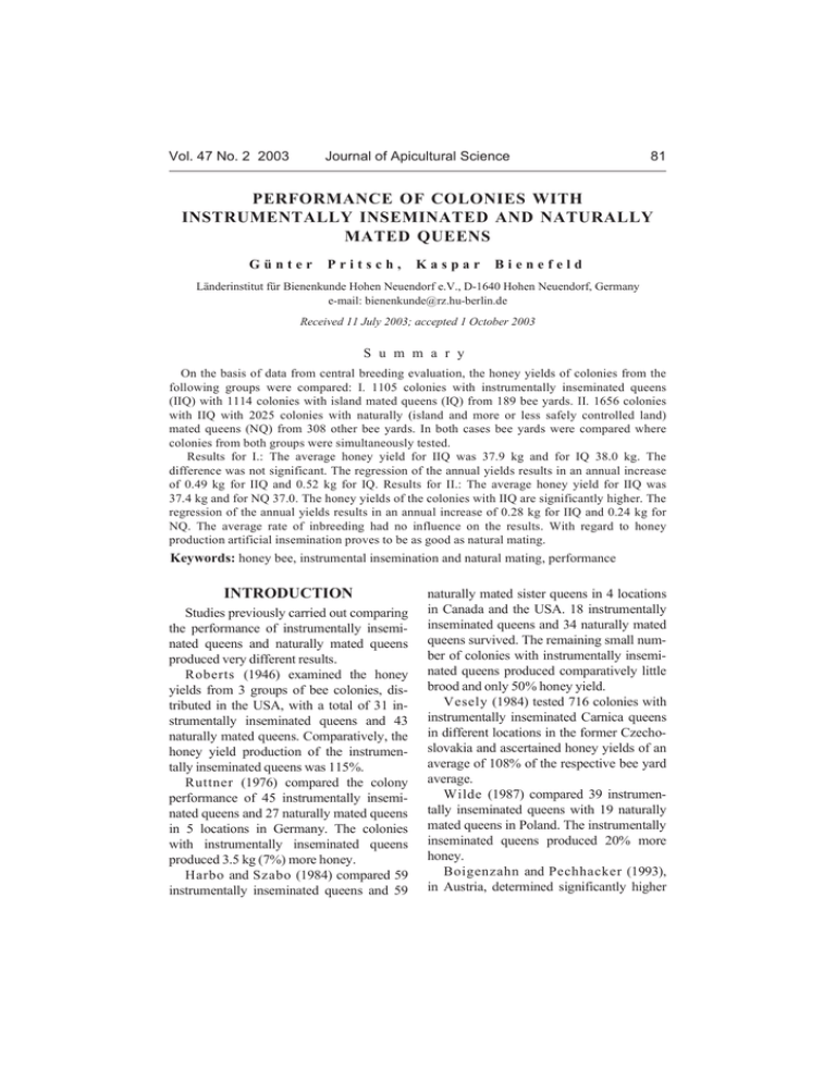 ʱ´ň ěé ұň î îđđí Ö±«®˛ż´ ±ş ß°·˝«´¬«®ż´ Í˝·»˛˝» čď ĐŰÎÚŃÎÓßŇÝŰ ŃÚ ÝŃÔŃŇ×ŰÍ É×ĚŘ ×ŇÍĚÎËÓŰŇĚßÔÔÇ ×ŇÍŰÓ×ŇßĚŰÜ ßŇÜ ŇßĚËÎßÔÔÇ ÓßĚŰÜ ĎËŰŰŇÍ Ů$˛¬»® Đ®·¬˝¸ô Őż°ż® Ţ·»˛»ş»´Ľ Ô<˛Ľ»®·˛¬·¬«¬ ş$® Ţ·»˛»˛µ«˛Ľ» ر¸»˛ Ň»«»˛Ľ±®ş »ňĘňô Üóďęěđ ر¸»˛ Ň»«»˛Ľ±®şô Ů»®łż˛§ »ółż·´ć ľ·»˛»˛µ«˛Ľ»ŕ®¦ň¸«óľ»®´·˛ňĽ» λ˝»·Ş»Ľ ďď Ö«´§ îđđíĺ ż˝˝»°¬»Ľ ď Ń˝¬±ľ»® îđđí Í « ł ł ż ® § Ѳ ¬¸» ľż· ±ş Ľż¬ż ş®±ł ˝»˛¬®ż´ ľ®»»Ľ·˛ą »Şż´«ż¬·±˛ô ¬¸» ¸±˛»§ §·»´Ľ ±ş ˝±´±˛·» ş®±ł ¬¸» ş±´´±©·˛ą ą®±«° ©»®» ˝±ł°ż®»Ľć ×ň ďďđë ˝±´±˛·» ©·¬¸ ·˛¬®«ł»˛¬ż´´§ ·˛»ł·˛ż¬»Ľ Ż«»»˛ ř××Ď÷ ©·¬¸ ďďďě ˝±´±˛·» ©·¬¸ ·´ż˛Ľ łż¬»Ľ Ż«»»˛ ř×Ď÷ ş®±ł ďčç ľ»» §ż®Ľň ××ň ďęëę ˝±´±˛·» ©·¬¸ ××Ď ©·¬¸ îđîë ˝±´±˛·» ©·¬¸ ˛ż¬«®ż´´§ ř·´ż˛Ľ ż˛Ľ ł±®» ±® ´» żş»´§ ˝±˛¬®±´´»Ľ ´ż˛Ľ÷ łż¬»Ľ Ż«»»˛ řŇĎ÷ ş®±ł íđč ±¬¸»® ľ»» §ż®Ľň ײ ľ±¬¸ ˝ż» ľ»» §ż®Ľ ©»®» ˝±ł°ż®»Ľ ©¸»®» ˝±´±˛·» ş®±ł ľ±¬¸ ą®±«° ©»®» ·ł«´¬ż˛»±«´§ ¬»¬»Ľň λ«´¬ ş±® ×ňć ̸» żŞ»®żą» ¸±˛»§ §·»´Ľ ş±® ××Ď ©ż íéňç µą ż˛Ľ ş±® ×Ď íčň𠵹ň ̸» Ľ·şş»®»˛˝» ©ż ˛±¬ ·ą˛·ş·˝ż˛¬ň ̸» ®»ą®»·±˛ ±ş ¬¸» ż˛˛«ż´ §·»´Ľ ®»«´¬ ·˛ ż˛ ż˛˛«ż´ ·˛˝®»ż» ±ş đňěç µą ş±® ××Ď ż˛Ľ đňëî µą ş±® ×Ďň λ«´¬ ş±® ××ňć ̸» żŞ»®żą» ¸±˛»§ §·»´Ľ ş±® ××Ď ©ż íéňě µą ż˛Ľ ş±® ŇĎ íéňđň ̸» ¸±˛»§ §·»´Ľ ±ş ¬¸» ˝±´±˛·» ©·¬¸ ××Ď ż®» ·ą˛·ş·˝ż˛¬´§ ¸·ą¸»®ň ̸» ®»ą®»·±˛ ±ş ¬¸» ż˛˛«ż´ §·»´Ľ ®»«´¬ ·˛ ż˛ ż˛˛«ż´ ·˛˝®»ż» ±ş đňîč µą ş±® ××Ď ż˛Ľ đňîě µą ş±® ŇĎň ̸» żŞ»®żą» ®ż¬» ±ş ·˛ľ®»»Ľ·˛ą ¸żĽ ˛± ·˛ş´«»˛˝» ±˛ ¬¸» ®»«´¬ň É·¬¸ ®»ąż®Ľ ¬± ¸±˛»§ °®±Ľ«˝¬·±˛ ż®¬·ş·˝·ż´ ·˛»ł·˛ż¬·±˛ °®±Ş» ¬± ľ» ż ą±±Ľ ż ˛ż¬«®ż´ łż¬·˛ąň Ő»§©±®Ľć ¸±˛»§ ľ»»ô ·˛¬®«ł»˛¬ż´ ·˛»ł·˛ż¬·±˛ ż˛Ľ ˛ż¬«®ż´ łż¬·˛ąô °»®ş±®łż˛˝» ×ŇĚÎŃÜËÝĚ×ŃŇ Í¬«Ľ·» °®»Ş·±«´§ ˝ż®®·»Ľ ±«¬ ˝±ł°ż®·˛ą ¬¸» °»®ş±®łż˛˝» ±ş ·˛¬®«ł»˛¬ż´´§ ·˛»ł·ó ˛ż¬»Ľ Ż«»»˛ ż˛Ľ ˛ż¬«®ż´´§ łż¬»Ľ Ż«»»˛ °®±Ľ«˝»Ľ Ş»®§ Ľ·şş»®»˛¬ ®»«´¬ň αľ»®¬ řďçěę÷ »¨żł·˛»Ľ ¬¸» ¸±˛»§ §·»´Ľ ş®±ł í ą®±«° ±ş ľ»» ˝±´±˛·»ô Ľ·ó ¬®·ľ«¬»Ľ ·˛ ¬¸» ËÍßô ©·¬¸ ż ¬±¬ż´ ±ş íď ·˛ó ¬®«ł»˛¬ż´´§ ·˛»ł·˛ż¬»Ľ Ż«»»˛ ż˛Ľ ěí ˛ż¬«®ż´´§ łż¬»Ľ Ż«»»˛ň ݱł°ż®ż¬·Ş»´§ô ¬¸» ¸±˛»§ §·»´Ľ °®±Ľ«˝¬·±˛ ±ş ¬¸» ·˛¬®«ł»˛ó ¬ż´´§ ·˛»ł·˛ż¬»Ľ Ż«»»˛ ©ż ďďëűň Ϋ¬¬˛»® řďçéę÷ ˝±ł°ż®»Ľ ¬¸» ˝±´±˛§ °»®ş±®łż˛˝» ±ş ěë ·˛¬®«ł»˛¬ż´´§ ·˛»ł·ó ˛ż¬»Ľ Ż«»»˛ ż˛Ľ îé ˛ż¬«®ż´´§ łż¬»Ľ Ż«»»˛ ·˛ ë ´±˝ż¬·±˛ ·˛ Ů»®łż˛§ň ̸» ˝±´±˛·» ©·¬¸ ·˛¬®«ł»˛¬ż´´§ ·˛»ł·˛ż¬»Ľ Ż«»»˛ °®±Ľ«˝»Ľ íňë µą řéű÷ ł±®» ¸±˛»§ň Řż®ľ± ż˛Ľ ͦżľ± řďçčě÷ ˝±ł°ż®»Ľ ëç ·˛¬®«ł»˛¬ż´´§ ·˛»ł·˛ż¬»Ľ Ż«»»˛ ż˛Ľ ëç ˛ż¬«®ż´´§ łż¬»Ľ ·¬»® Ż«»»˛ ·˛ ě ´±˝ż¬·±˛ ·˛ Ýż˛żĽż ż˛Ľ ¬¸» ËÍßň ďč ·˛¬®«ł»˛¬ż´´§ ·˛»ł·˛ż¬»Ľ Ż«»»˛ ż˛Ľ íě ˛ż¬«®ż´´§ łż¬»Ľ Ż«»»˛ «®Ş·Ş»Ľň ̸» ®»łż·˛·˛ą łż´´ ˛«łó ľ»® ±ş ˝±´±˛·» ©·¬¸ ·˛¬®«ł»˛¬ż´´§ ·˛»ł·ó ˛ż¬»Ľ Ż«»»˛ °®±Ľ«˝»Ľ ˝±ł°ż®ż¬·Ş»´§ ´·¬¬´» ľ®±±Ľ ż˛Ľ ±˛´§ ëđű ¸±˛»§ §·»´Ľň Ę»»´§ řďçčě÷ ¬»¬»Ľ éďę ˝±´±˛·» ©·¬¸ ·˛¬®«ł»˛¬ż´´§ ·˛»ł·˛ż¬»Ľ Ýż®˛·˝ż Ż«»»˛ ·˛ Ľ·şş»®»˛¬ ´±˝ż¬·±˛ ·˛ ¬¸» ş±®ł»® ݦ»˝¸±ó ´±Şżµ·ż ż˛Ľ ż˝»®¬ż·˛»Ľ ¸±˛»§ §·»´Ľ ±ş ż˛ żŞ»®żą» ±ş ďđčű ±ş ¬¸» ®»°»˝¬·Ş» ľ»» §ż®Ľ żŞ»®żą»ň É·´Ľ» řďçčé÷ ˝±ł°ż®»Ľ íç ·˛¬®«ł»˛ó ¬ż´´§ ·˛»ł·˛ż¬»Ľ Ż«»»˛ ©·¬¸ ďç ˛ż¬«®ż´´§ łż¬»Ľ Ż«»»˛ ·˛ б´ż˛Ľň ̸» ·˛¬®«ł»˛¬ż´´§ ·˛»ł·˛ż¬»Ľ Ż«»»˛ °®±Ľ«˝»Ľ îđű ł±®» ¸±˛»§ň ޱ·ą»˛¦ż¸˛ ż˛Ľ Đ»˝¸¸ż˝µ»® řďççí÷ô ·˛ ß«¬®·żô Ľ»¬»®ł·˛»Ľ ·ą˛·ş·˝ż˛¬´§ ¸·ą¸»® čî ¸±˛»§ §·»´Ľ ş®±ł ďčę ˝±´±˛·» ©·¬¸ ·˛¬®«ó ł»˛¬ż´´§ ·˛»ł·˛ż¬»Ľ Ż«»»˛ řîđňěé µą÷ ˝±ł°ż®»Ľ ¬± íçç ˝±´±˛·» ©·¬¸ Ż«»»˛ łż¬»Ľ ·˛ ľ»» §ż®Ľ řďçňđî µąĺ çíű÷ň ̸» ¸±˛»§ §·»´Ľ ş®±ł ěę ˝±´±˛·» ©·¬¸ «˛˝±˛ó ¬®±´´»Ľ łż¬»Ľ Ż«»»˛ ©»®» »Ş»˛ ´±©»® ż¬ čéűň ͦż´ż·˛7 řďççë÷ô ·˛ Ř«˛ąż®§ô ˝ż®®·»Ľ ±«¬ ż î §»ż® ´±˛ą ¬«Ľ§ ±ş ą®±«° ±ş č ľ»» ˝±´±˛·» ©·¬¸ ·˛¬®«ł»˛¬ż´´§ ·˛»ł·˛ż