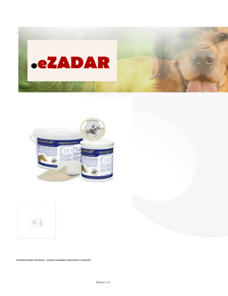 Vetripharm Equipur Racepower - preparat wzmagający wytrzymałość i sprawność Strona 1 z 2 L-karnityna jest pochodną aminokwasów i służy jako transporter długo łańcuchowych kwasów tłuszczowych. Tylko związane z L-karnityną kwasy tłuszczowe zostają wchłonięte przez komórki dla pozyskania energii, przy czym serce w 80% a mięśnie szkieletu w 50% mogą zostać pokryte zapotrzebowaniem energii pochodzącej z tych kwasów. Tylko dodatkowe podstawienie do dyspozycji L-karnityny stanowi dla komórek mięśni szczególnie przy finiszu dodatkowe źródło energii. Poprawiona tym samym kondycja mięśni serca wpływa na zwiększony transport energii i tlenu we krwi, przez co wytrzymałość w widoczny sposób wzrasta. Drożdże piwne są bogate w aminokwasy oraz w witaminy z grupy B, które są niezastąpione dla wytrzymałości i funkcjonowaniu nerwów. Mączka pszenna i skrobia, wyprodukowane wg specjalnej metody na wysokoenergetyczną paszę, używane są do lepszej pracy mięśni i do napełnienia spichlerza z glikogenem. Grysik bananowy z dojrzałych bananów charakteryzuje się dużym udziałem w szybko dostępne skrobia i elektrolity. Enzymy jako wspomagacz trawienia poprawiają rozkład zawartych w pożywieniu protein w aminokwasach. Mannan-Oligosaccharide ze szczególnego ekstraktu ścian komórek drożdżowych podwyższają odporność organizmu i sprawność. Wapno i magnez są potrzebne przede wszystkim do przemiany energii i przekazywania bodźców do komórek nerwowych i mięśniowych. Equipur-racepower z L-karnityną powoduje kompleksowy i długoterminowy wzrost sprawności konia. Aktywacja przemiany materii mięśni prowadzi do wzrostu uzyskanej energii jak również optymalnej odbudowy i ochrony włókien mięśni. Przyspieszone zmniejszanie kwasu mlekowego jak również tworzenie krwi przyczyniają się do skrócenia fazy regeneracyjnej. Tym samym koń jest w stanie stawić czoło przez dłuższy czas wysokiemu wyczynowi. Zawartość: Białko surowe 30,6 % Tłuszcz 3,4 % Białko surowe 1,8 % Popiół surowy 11,7 % Potas 1,2% Fosfor 0,6 % Wapno 0,5% Magnez 0,5% Lizyna 1,6% Treonina 0,8% Metionina 0,5% Cystyna 0,3% Składniki dodatkowe na kg: Witamina E 20.000 mg Witamina C 10.000 mg Witamina B6 1.000 mg żelazo 6000 mg cynk 10.000 mg miedź 800 mg jod 15 mg selen 10 mg L-karnityn 37.500 mg L-lizyna 16.000 mg L-treonina 8.000 mg DL-metionina 5.000 mg L-cystyna 3.000 mg Skład: mączka sojowa 40,0%, grysik bananowy 10,0%, drożdże (ekstrakt) 10,0%, fumarat magnezu 4,2%, mączka z nasion lnu 3,7%, skrobia kukurydziana 3,4%, drożdże piwne 3,0%, mączka pszenna 2,0%, olej lniany 1,5%, melasa 1,0% **składniki dodatkowe wg tabeli 21,2% Dawkowanie: Kuce sportowe: 70g/dziennie- 3/4 miarki Konie sportowe(500kg): 100g/dziennie- miarka Wymieszać z paszą. Ostatnie 3 dni przed startem oraz w dniu startu może być podane w zależności od potrzeby 1,5 porcji. Czas podawania: By uzyskać optymalne działanie, podawać paszę podczas całego cyklu treningowego i startowego, przynajmniej jednak ostatnie 10 dni przed startem. Wskazówka: Ze względu na wysoką zawartość mikroelementów w stosunku do zwykłej paszy należy podawać dziennie kucom nie więcej niż 140g, koniom(500kg) do 200g. Opakowanie o pojemności 1000g Opakowanie o pojemności 3000g Strona 2 z 2