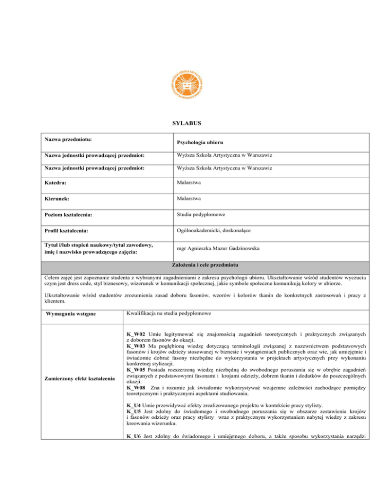 sylabus - Wyższa Szkoła Artystyczna