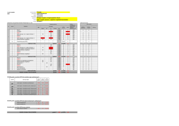 kierunek studiów: PLAN STUDIÓW profil studiów: MISH stopień: forma studiów: specjalność: ścieżka: od roku: Filologia ogólnoakademicki I (licencjat) stacjonarne filologia rosyjska z drugim językiem obcym język rosyjski zaawans. z językiem angielskim/ukraińskim 2016/2017 Zatwierdzony decyzją Rady Wydziału Filologicznego UŁ z dnia tabela pomocnicza Szczegóły przedmiotu rok semestr ilość godzin Przedmiot Forma zaliczenia ECTS 90 45 60 60 120 60 60 75 Z Z E E E E E E 6 4 4 6 8 4 5 5 Z lub E 5 p. ECTS: Z E Z Z E E E E Z p. ECTS: E E E E Z Z E Z godzin: 570 150 60 60 60 60 150 60 60 30 690 120 60 60 60 30 120 60 30 0 0 540 E p. ECTS: 47 10 4 5 4 5 10 4 5 1 48 8 4 5 5 2 8 5 1 5 2 45 godzin: 1800 p. ECTS: 140 godzin**: 1800 p. ECTS: 140 KOD Wykład I 1 1 1 1 2 2 2 2 1,2 PNJR 1 Fonetyka PNJ2 1 Gram.opis.jęz. ros. w ujęciu funkcjon. 1 PNJR 2 PNJ2 2 Gram.opis.jęz. ros. w ujęciu funkcjon. 2 Historia literatury rosyjskiej 1 S/P ĆK 90 45 60 45 120 60 45 45 15 15 30 II 5 5 5 5 5 6 6 6 6 6 Razem Przedmioty grupy AR,B razem po I roku : 3 3 3 3 3 4 4 4 4 warsztaty godzin*: PNJR 3 PNJ2 3 Gram.opis.jęz.ros. w ujęciu funkcjon. 3 Kultura rosyjska z elementami historii 2 Historia literatury rosyjskiej 2 PNJR 4 PNJ2 4 Historia literatury rosyjskiej 3 WF razem po II roku : PNJR 5 PNJ2 5 Polsko-ros. lingwistyka kontrastywna Historia literatury rosyjskiej 4 Seminarium 1 PNJR 6 PNJ2 6 Seminarium 2 Praca licencjacka Egzamin licencjacki razem po III roku : 30 150 60 45 60 30 150 60 30 30 30 120 60 30 30 15 30 godzin*: 30 120 60 30 RAZEM W CIĄGU TOKU STUDIÓW: BILANS godzin i punktów ECTS dla modułów zajęć podstawowych: symbol pM* suma godzin suma punktów udział procentowy (punktowy) moduł zajęć o charakterze podstawowym: 1740 125 89,3% moduł zajęć o charakterze podst. praktycznym: 1155 opis typu zajęć 79 56,4% pML moduł zajęć o charakterze podst. literaturoznawczym: 255 20 14,3% pMJ moduł zajęć o charakterze podst. językoznawczym:270 22 15,7% pMK moduł zajęć o charakterze podst. kulturoznawczym: 60 pMS MS moduł zajęć o charakterze podst. specjalizacyjnym 0 4 0 10 2,9% 0,0% 7,1% pMP moduł zajęć o charakterze specjalizacyjnym 60 BILANS godzin i punktów ECTS dla zajęć teoretycznych i praktycznych: zajecia teoretyczne: 195 20 14,3% zajecia praktyczne: 1575 120 85,7% 3600 144 102,9% BILANS godzin i punktów ECTS pracy studenta: praca własna studenta: RAZEM W CIĄGU TOKU STUDIÓW: moduły: P-z.podstawowe, Sspecjalizacyjne Jjęzykoznawcze, Ppraktyczne Lliteraturoznawcze Bilans p ECTS ECTS zaj. praktycznych ECTS zaj. wlasnych 6 6 4 6 8 4 5 5 4 6 8 4 5 5 0 11 pMP pMP pMJ pMK pML pMP pMP pML pMJ 10 4 5 4 5 10 4 5 0 10 4 5 4 5 10 4 5 1 pMP pMP pMJ pML MS pMP pMP MS MS MS 8 4 5 5 0 8 5 0 0 0 8 4 5 5 1 8 5 1 6 4 pMP pMP pMP pMJ pMP pMp pMJ pML ECTS zaj …