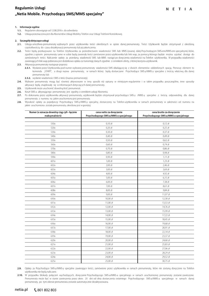 Regulamin Usługi „Netia Mobile. Przychodzący SMS/MMS specjalny” netia.pl Regulamin Usługi „Netia Mobile. Przychodzący SMS/MMS specjalny” netia.pl