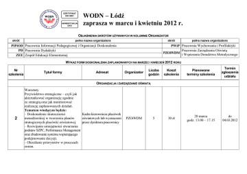 OFERTA WODN-Łódź na MARZEC i KWIECIEŃ 2012 r.