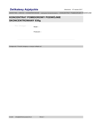 Delikatesy Azjatyckie Utworzono : 07 marzec 2017 WARZYWA I OWOCE KONSERWOWANE > warzywa konserwowane > KONCENTRAT POMIDOROWY PODWÓJNIE S KONCENTRAT POMIDOROWY PODWÓJNIE SKONCENTROWANY 830g No image Model : - Producent : - Dostępność: Produkt dostępny w naszym sklepie od kontakt : - [email protected] Strona 1