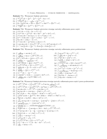 7. Całka Riemanna — funkcje pierwotne — rozwiązania Zadanie 7.1