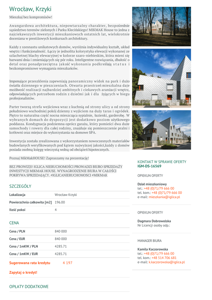 Wrocław, Krzyki - Iglica. Nieruchomości