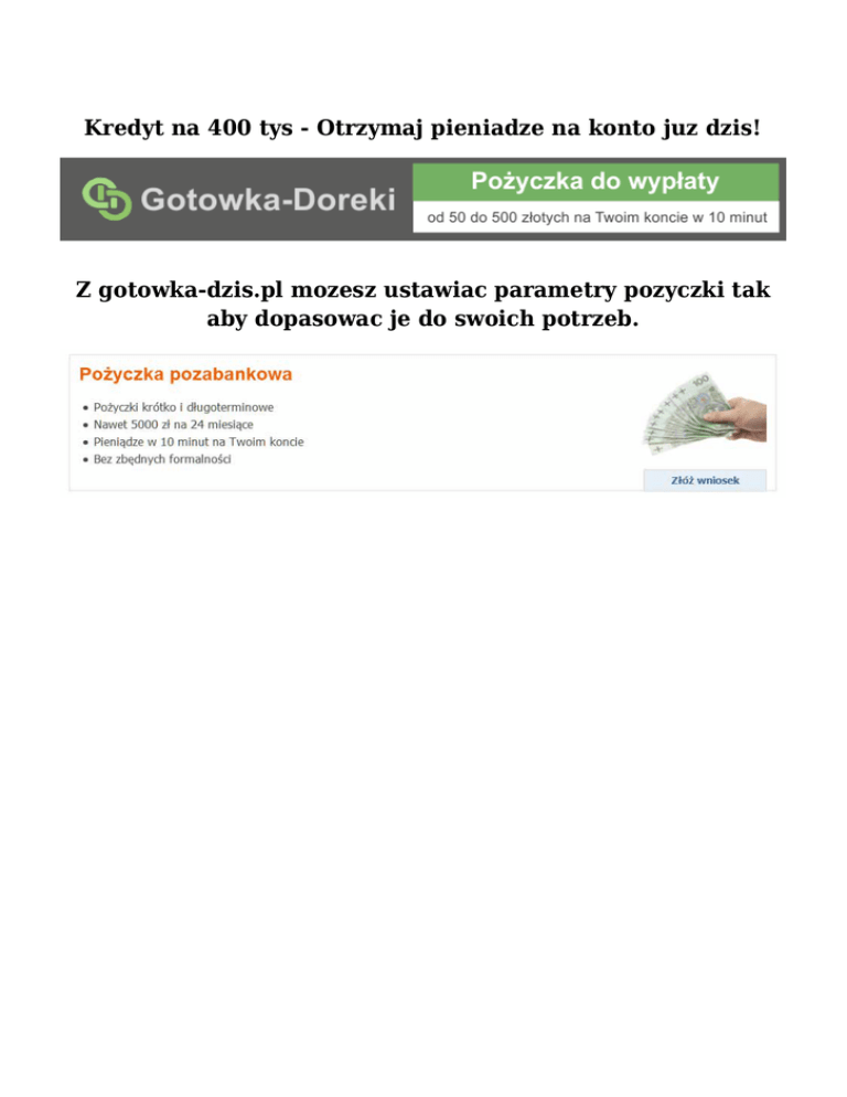 Kredyt na 400 tys - Otrzymaj pieniadze na konto juz dzis! Z gotowka-dzis.pl mozesz ustawiac parametry pozyczki tak aby dopasowac je do swoich potrzeb. Kredyt na 400 tys, fundusz mikro pozyczka, karta kredytowa pko bp oplata roczna, getin kredyty gotowkowe, warunki uzyskania kredytu gotowkowego W naszej ofercie znajdziecie Państwo dom, mieszkanie, biuro. użytkowej mamy kredyt na 400 tys już działkę wartą ok. W przypadku auta o wartości 180 tys. przez Michał Szafrański dodano 25 listopada 2013 · 134 komentarzy. Złóż wniosek online i korzystaj z pożyczki bez wychodzenia z domu Pekao SA Kredyt Gotówkowy (Pożyczka Ekspresowa) Wysokość kredytu: do 100. . użytkowej mamy już działkę wartą ok. przez Michał Szafrański dodano 25 listopada 2013 · 134 komentarzy. Zapytaj o kredyt hipoteczny! Oddam Akwarium 400 L najnowsze ogłoszenia kupię sprzedam ogłoszenie Oddam Akwarium 400 L oferty 100 tys. zł - inspekcja pracownika banku (400 zł lub 700 zł) dla kredytów powyżej 250 tys. 450 zł, spłata przez 6 miesięcy. Oferujemy usługę pośrednictwa w zakupie, sprzedaży i wynajmie nieruchomości. Pekao SA Kredyt Gotówkowy (Pożyczka Ekspresowa) Wysokość kredytu: do 100. forma wyceny dla kredytów do 250 tys. Drogi samochód zdecydowanie bardziej opłaca się wziąć w leasing, niż kupić go na kredyt – wskazują szacunki Tax Care. Firmy budowlane z polecenia, materiały budowlane, budowa domu, usługi budowlane, składy,montaż,instalacje,glazura,terakota Kredyt na 400 tys, bocian pozyczki biala podlaska, kredyt dla ucznia szkoly sredniej, ile kosztuje kredyt odnawialny w pko bp, kredyty konsolidacyjne na 10 lat banki Kredyt na 400 tys Tarnobrzeg Kredyty dla zadluzonych z komornikiem Skarszewy Pozyczka dla bezrobotnych bez bik Zamosc Pozyczka bez bik i krd torun Andrychow Kredyt przez internet bez wychodzenia z domu Staporkow Getin noble bank kontakt Kietrz Kredyty chwilowki tarnowskie gory Koluszki Pozyczka dla bezrobotnych na dowod Bielawa Pozyczka optima Belchatow Pozyczka na sms Nowa Ruda Najlepsze kredyty hipoteczne Klodawa Oblicz kredyt mieszkaniowy Strumien Kredyt dla singli Grabow Nad Prosna Chwilowka sms365 Bedzin Getin noble bank online logowanie Grajewo Kalkulator kredytowy w frankach Bialystok Kredyt dla pracujacych za granica Czarna Bialostocka Dobry kredyt sieradz Miedzyzdroje Ubezpieczenie kredytu Kredyt chwilowka warszawa
