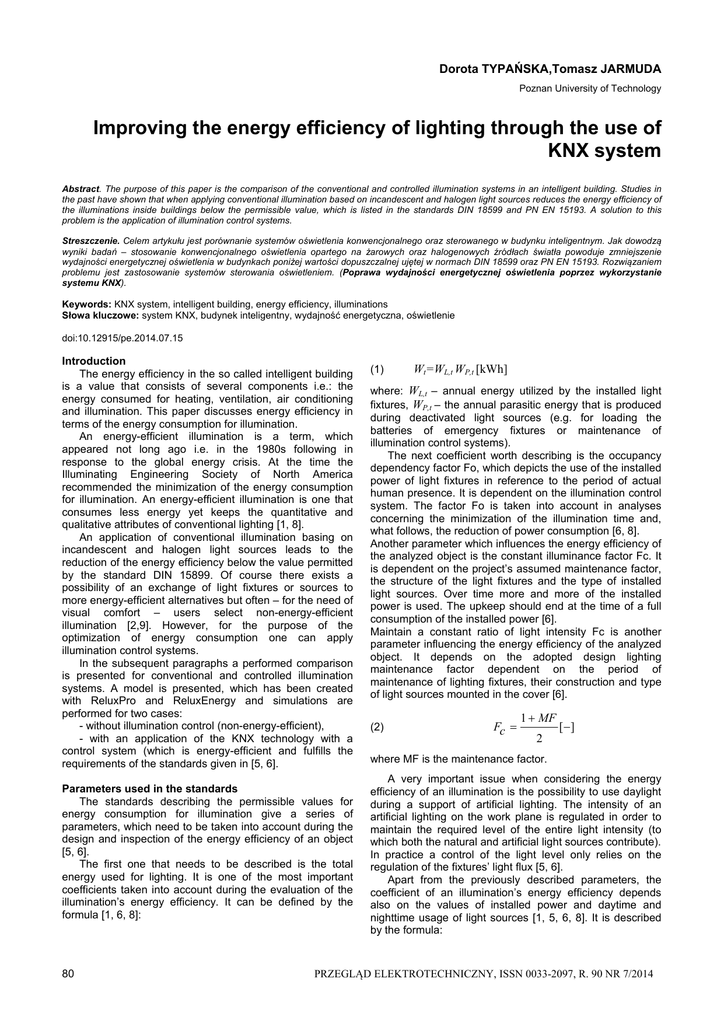 Słowa kluczowe: system KNX, budynek inteligentny, wydajność energetyczna, oświetlenie