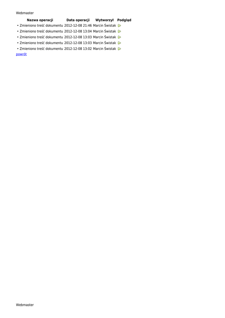 Webmaster Webmaster Nazwa operacji Data operacji Wytworzył