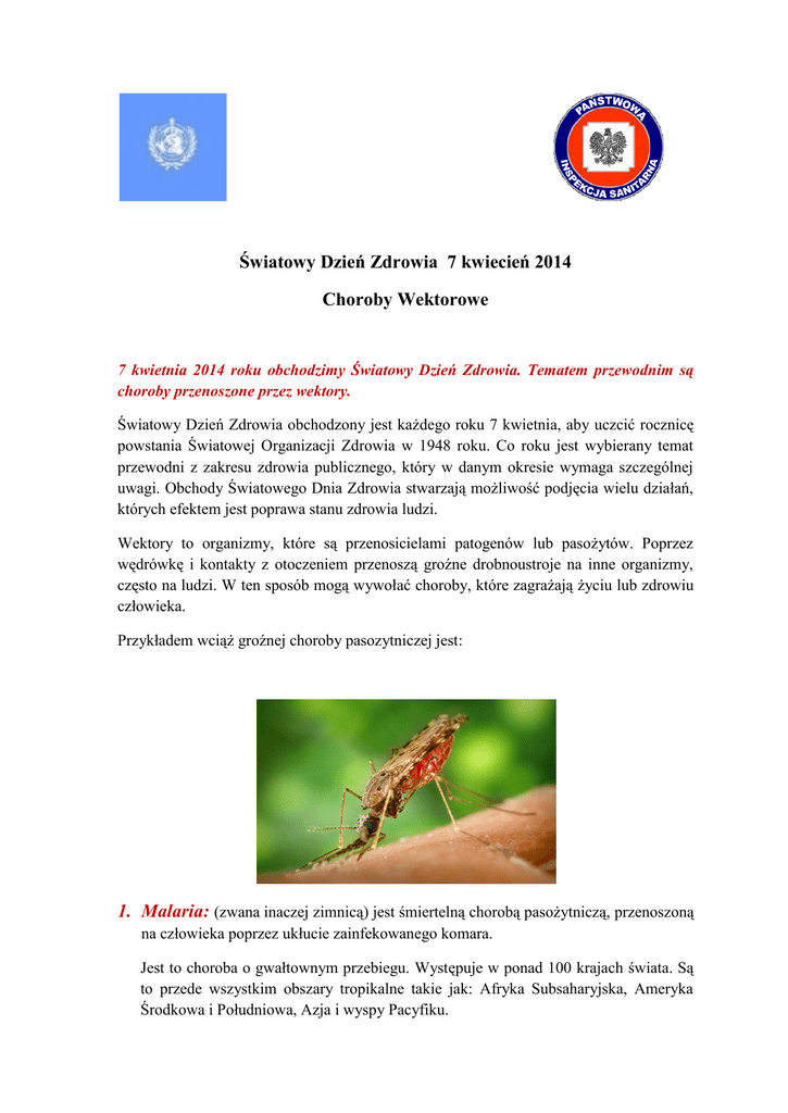 Światowy Dzień Zdrowia 7 kwiecień 2014 Choroby Wektorowe 1