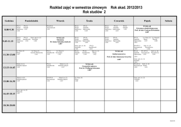 Rozkład zajęć w semestrze zimowym Rok akad. 2012/2013 Rok