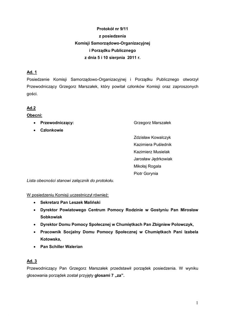 Protokół nr 9/11 z posiedzenia Komisji Samorządowo