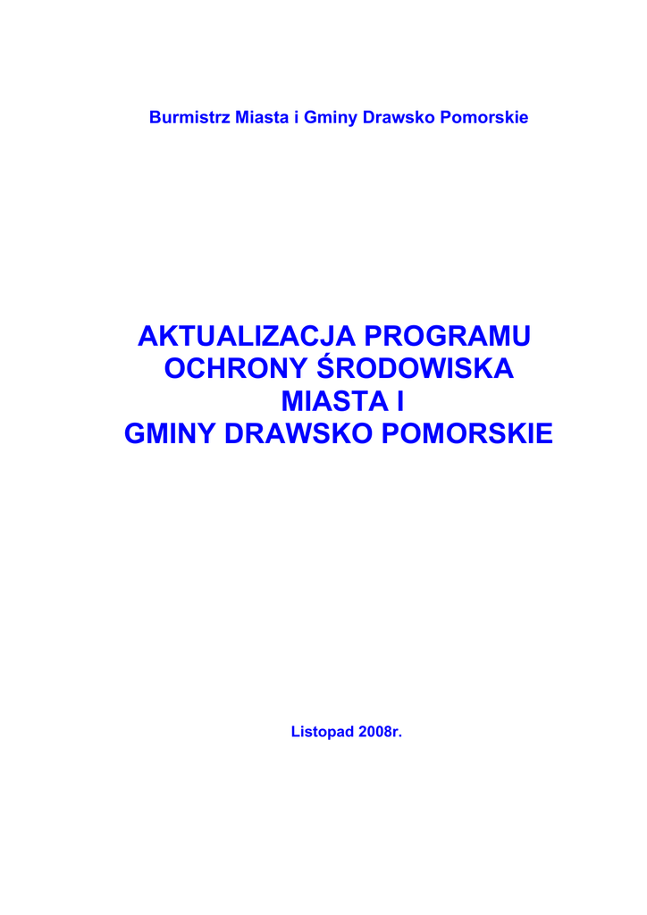 Aktualizacja programu ochrony środowiska miasta i gminy drawsko