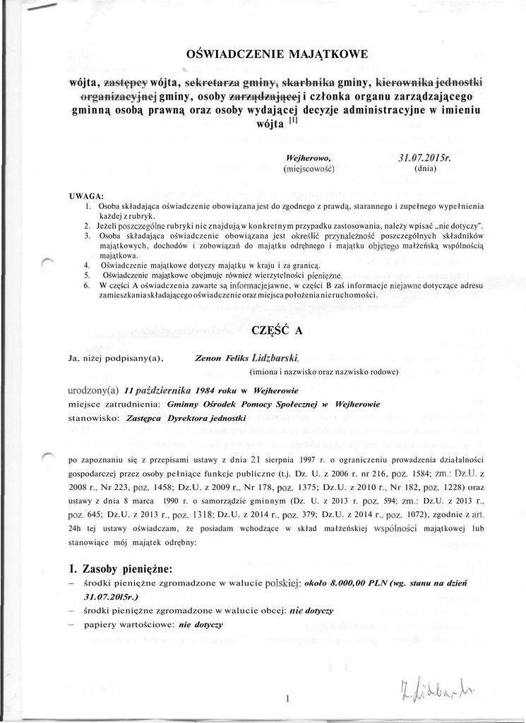 Oświadczenie majątkowe Z-ca Dyrektora Zenon Lidzbarski początek