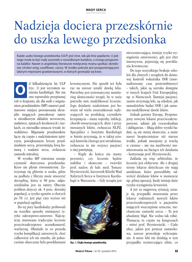 Nadzieja dociera przezskórnie do uszka lewego przedsionka