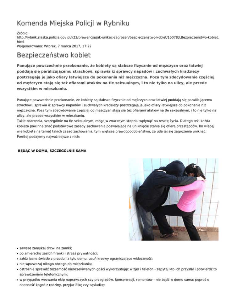 Komenda Miejska Policji w Rybniku Bezpieczeństwo kobiet