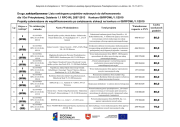 Druga ZAKLTUALIZOWANA Lista rankingowa projektów
