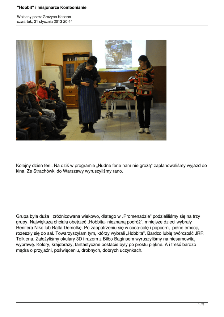 grupy. Największa chciała obejrzeć „Hobbita- nieznaną podróż”, mniejsze dzieci wybrały