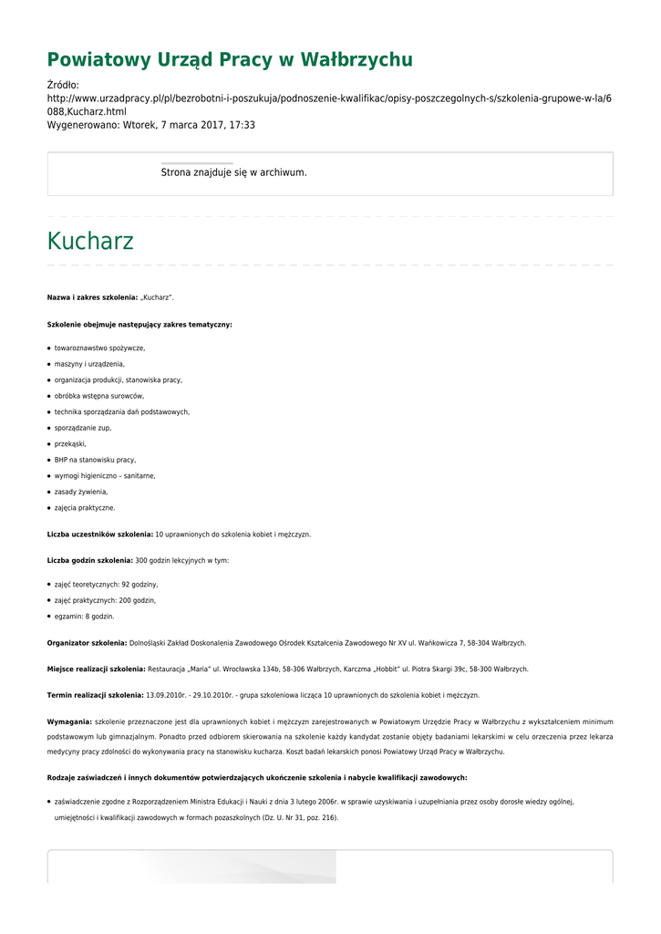 Kucharz - Powiatowy Urząd Pracy w Wałbrzychu