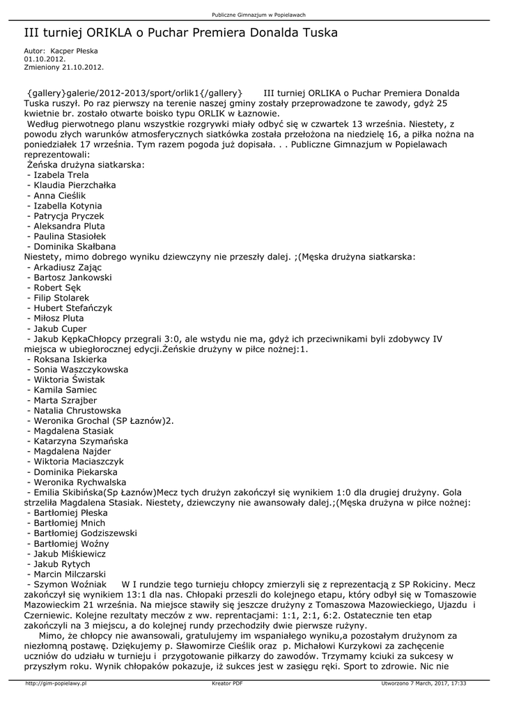 uczniów do udziału w turnieju i przygotowanie piłkarzy do zawodów. Trzymamy kciuki za sukcesy w
