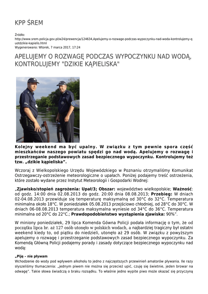 kpp śrem apelujemy o rozwagę podczas wypoczynku nad wodą