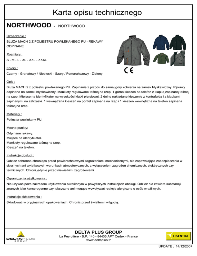 %) #0 -1 )> 2# NORTHWOOD " ! " #$ %& ' '' ''' #(#%& %& %)#*& + , -. %& + #$%/#*& (#& 0 - (1 0#( -)%1 0#*(.2# 3 0 0%#41 4# -$5 26%& .#7 % $. ,7&-.* &3 8.*& #40 $. ,7&-.* &3 . )& %21(#* )9$: %03 ; 26% . -/ )(<# .(0.: 0 : )9$: %03 5- 4)&< .)#% *&-#.#9 .(). 0 %- #*53 4#( .74 . - .#)%<74: .(0.$ 0 &$ )%-. 3 ; **8)% . -/ 0#%)<( 0 %0 ; . -/ **8)% )(<# 0 )9$: %03 )% 7& #( -)% 0#*(.& 3 # 01.)& 40 %8.*&3 5- 4)&< .)#%3 . )& %21(#* )9$: %03 -/ )(<#3 -)%1.5 #,-712 4 = #>%# >%# : 0%4 0#* %> #*&$ 2%#= $ $> &$ ? 0* 5: ,0 * -.%5&> *&5:).#*&> *%1.> )$#-<%&&>? *&7: $ 2%#=/ >$ &>? (.)%&&> & )%$ &>3 >%# 54& 0%4 * (. $ 2%#= $ 3 2% 1=&).#* 1=&*@ 0# .%-$ 1=&).#* #.%9(#&$ * 0#*&=-&> -)%1.5> #,-712 3 4 = * % -1,-)5 &> 5.# .%#2 & )#.-& $#2: *&*#7&*@ %.5 (%2 1 #-6, *%=( *&>3 -)%1.5 -.74#* .74#*@ * #%&2 (&> #0.#* >3 >%# @ 0%4 9* )7$ * (2# :3 DELTA PLUS GROUP La Peyrolière - B.P. 140 - 84405 APT Cedex - France www.deltaplus.fr UPDATE : 14/12/2007 %) #0 -1 )> 2# NORTHWOOD " -)%1.5 &- + .#-%*5 $0%)1% $.-&$( 0% ABC3 ,%6,. $> ,%4# #2% #? 071. * #%$(5 )$0%)1%? #4* %#* #2% #3 >(#%#* ,%# #3 0%-#*@? 0#44*@ 4 7 1 0%& *#453 &9 @ -1>#? #40($ @ 0%& 1=& 1 %#01-( .6*3 -1-&@ * -1-%.> #,%#)#*&$ ,8,$3 %$)%& &%6, 2#4& *&$2 $ 4&%.)&*& 1%#05-. 5 EF+GEG? *7- * .%- %2##$ ? -.#4( *#9 ? .#$<#%)1? 0#* )% (-)	 3 DELTA PLUS GROUP La Peyrolière - B.P. 140 - 84405 APT Cedex - France www.deltaplus.fr UPDATE : 14/12/2007