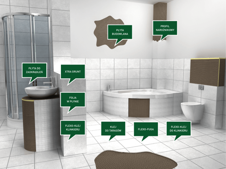 PROFIL NAROŻNIKOWY PŁYTA BUDOWLANA PŁYTA DO ZAOKRĄGLEŃ XTRA GRUNT FOLIA W PŁYNIE FLEXO-KLEJ KLINKIERU KLEJ DO TARASÓW FLEXO-FUGA FLEXO-KLEJ DO KLINKIERU