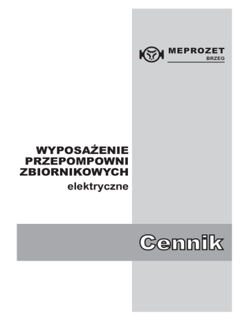MEPROZET BRZEG WYPOSAŻENIE PRZEPOMPOWNI ZBIORNIKOWYCH elektryczne Cennik WYPOSAŻENIE PRZEPOMPOWNI ZBIORNIKOWYCH CENNIK Spis treści Elektryczne urządzenia sterownicze do przepompowni sieciowych kliknij Elektryczne urządzenia sterownicze do przepompowni przydomowych kliknij Pozostały osprzęt elektryczny kliknij MEPROZET BRZEG WYPOSAŻENIE PRZEPOMPOWNI ZBIORNIKOWYCH Elektryczne urządzenia sterownicze do przepompowni sieciowych Skrzynki sterownicze Pompy Nazwa/Typ Liczba Moc [ kW] Rozruch Cena Sygnalizacja fabryczna alarmowa netto [PLN] Skrzynki do zabudowy wewnętrznej SN2-.../J SNA2-.../J SNA2-.../D 1 1 2 0,37 ÷ 4,0 0,37 ÷ 4,0 0,37 ÷ 4,0 bezpośredni bezpośredni bezpośredni nie tak tak 1890 2190 3990 SP3-.../J SP3-.../J SPA3-.../J SPA3-.../J SPA3-.../D SPA3-.../D 1 1 1 1 2 2 5,5 ÷ 10,0 12,5 ÷ 15,0 5,5 ÷ 10,0 12,5 ÷ 15,0 5,5 ÷ 10,0 12,5 ÷ 15,0 soft-start soft-start soft-start soft-start soft-start soft-start nie nie tak tak tak tak 4260 5040 4390 5240 6450 7300 SPA4-.../J SPA4-.../J SPA4-../D SPA4-../D 1 1 2 2 5,5 ÷ 10,0 12,5 ÷ 15,0 5,5 ÷ 10,0 12,5 ÷ 15,0 gwiazda/trójkąt gwiazda/trójkąt gwiazda/trójkąt gwiazda/trójkąt tak tak tak tak 3690 3940 5350 5950 SN2-.../J/M SNA2-.../J/M SNA2-.../D/M 1 1 2 0,37 ÷ 4,0 0,37 ÷ 4,0 0,37 ÷ 4,0 bezpośredni bezpośredni bezpośredni nie tak tak 2260 2560 4360 SP3-.../J/M SP3-.../J/M SPA3-.../J/M SPA3-.../J/M SPA3-../D/M SPA3-../D/M 1 1 1 1 2 2 5,5 ÷ 10,0 12,5 ÷ 15,0 5,5 ÷ 10,0 12,5 ÷ 15,0 5,5 ÷ 10,0 12,5 ÷ 15,0 soft-start soft-start soft-start soft-start soft-start soft-start nie nie tak tak tak tak 4660 5440 4790 5640 7100 7950 SPA4-.../J/M SPA4-.../J/M SPA4-.../D/M SPA4-.../D/M 1 1 2 2 5,5 ÷ 10,0 12,5 ÷ 15,0 5,5 ÷ 10,0 12,5 ÷ 15,0 gwiazda/trójkąt gwiazda/trójkąt gwiazda/trójkąt gwiazda/trójkąt tak tak tak tak 4140 4390 5950 6550 Skrzynki do zabudowy zewnętrznej uwaga: ceny powyżej obejmują wykonanie standardowe skrzynek zgodnie ze specyfikacją techniczną zawartą w ofercie katalogowej Spółki MEPROZET / ceny skrzynek w wykonaniu niestandardowym są ustalane odrębnie po przekazaniu przez klienta szczegółowej specyfikacji technicznej Do cen podanych wyżej doliczyć pod.VAT22% Cennik ważny od dnia 1 lutego 2009 r. Strona 22 MEPROZET BRZEG WYPOSAŻENIE PRZEPOMPOWNI ZBIORNIKOWYCH Elektryczne urządzenia sterownicze do przepompowni przydomowych Skrzynki sterownicze Pompy Nazwa/Typ Liczba Moc [ kW] Zasilanie [V] Rozruch Cena Sygnalizacja fabryczna alarmowa netto [PLN] SPS-1 SPS-3 1 1 Skrzynki do zabudowy wewnętrznej bezpośredni 0,37÷1,5 / 230 bezpośredni 0,37÷4,0 / 400 tak tak 910 970 SPS-1/M SPS-3/M 1 1 Skrzynki do zabudowy zewnętrznej bezpośredni 0,37÷1,5 / 230 bezpośredni 0,37÷4,0 / 400 tak tak 1200 1260 Skrzynki złączowe i złączowo-sygnalizacyjne Pompy Nazwa/Typ Liczba SZ-1/J SZ-3/J SZ-1/D SZ-3/D SZS-1 SZS-3 1 1 2 2 Moc [kW] Zasilanie [V] Cena Sygnalizacja fabryczna alarmowa netto [PLN] Skrzynki do zabudowy zewnętrznej patrz katalog 230 patrz katalog 400 patrz katalog 230 patrz katalog 400 nie nie nie nie 420 430 430 440 Skrzynki do zabudowy wewnętrznej i zewnętrznej 1 patrz katalog 230 tak 1 patrz katalog 400 tak 580 580 Pozostały osprzęt elektryczny Nazwa/Typ Indeks Wyłącznik pływakowy L-5m Wyłącznik pływakowy L-10m Cena fabryczna netto [PLN] 80 110 Do cen podanych wyżej doliczyć pod.VAT22% Cennik ważny od dnia 1 lutego 2009 r. Strona 23 MEPROZET BRZEG