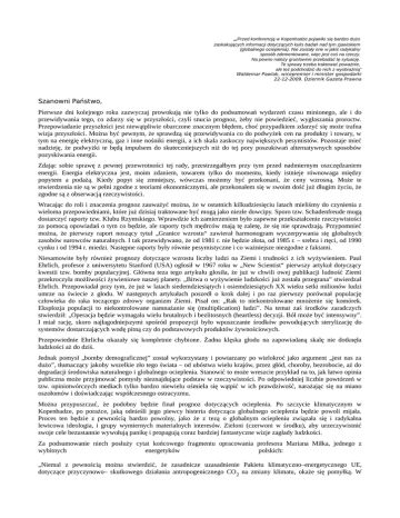 „Przed konferencją w Kopenhadze pojawiło się bardzo dużo zaskakujących informacji dotyczących kulis badań nad tym zjawiskiem (globalnego ocieplenia). Nie zostały one w jakiś radykalny sposób zdementowane, więc jest coś na rzeczy. Na pewno należy gruntownie przebadać tę sytuację. Te sprawy trzeba traktować poważnie, ale też podchodzić do nich z wyobraźnią“ Waldemar Pawlak, wicepremier i minister gospodarki 22-12-2009. Dziennik Gazeta Prawna Szanowni Państwo, Pierwsze dni kolejnego roku zazwyczaj prowokują nie tylko do podsumowań wydarzeń czasu minionego, ale i do przewidywania tego, co zdarzy się w przyszłości, czyli snucia prognoz, żeby nie powiedzieć, wygłaszania proroctw. Przepowiadanie przyszłości jest niewątpliwie obarczone znacznym błędem, choć przypadkiem zdarzyć się może trafna wizja przyszłości. Można być pewnym, że sprawdzą się przewidywania co do podwyżek cen na produkty i towary, w tym na energię elektryczną, gaz i inne nośniki energii, a ich skala zaskoczy największych pesymistów. Pozostaje mieć nadzieję, że podwyżki te będą impulsem do skuteczniejszych niż do tej pory poszukiwań alternatywnych sposobów pozyskiwania energii. Zdając sobie sprawę z pewnej przewrotności tej rady, przestrzegałbym przy tym przed nadmiernym oszczędzaniem energii. Energia elektryczna jest, moim zdaniem, towarem tylko do momentu, kiedy istnieje równowaga między popytem a podażą. Kiedy popyt się zmniejszy, wówczas możemy być przekonani, że ceny wzrosną. Może te stwierdzenia nie są w pełni zgodne z teoriami ekonomicznymi, ale przekonałem się w swoim dość już długim życiu, że zgodne są z obserwacją rzeczywistości. Wracając do roli i znaczenia prognoz zauważyć można, że w ostatnich kilkudziesięciu latach mieliśmy do czynienia z wieloma przepowiedniami, które już dzisiaj traktowane być mogą jako niezłe dowcipy. Sporo tzw. Schadenfreude mogą dostarczyć raporty tzw. Klubu Rzymskiego. Wprawdzie ich zamierzeniem było zapewne przekształcenie rzeczywistości za pomocą opowiadań o tym co będzie, ale raporty tych mędrców mają tę zaletę, że się nie sprawdzają. Przypomnieć można, że pierwszy raport noszący tytuł „Granice wzrostu“ zawierał harmonogram wyczerpywania się globalnych zasobów surowców naturalnych. I tak przewidywano, że od 1981 r. nie będzie złota, od 1985 r. – srebra i rtęci, od 1990 cynku i od 1994 r. miedzi. Następne raporty były równie pesymistyczne i co ważniejsze niezgodne z faktami. Niesamowite były również prognozy dotyczące wzrostu liczby ludzi na Ziemi i trudności z ich wyżywieniem. Paul Ehrlich, profesor z uniwersytetu Stanford (USA) ogłosił w 1967 roku w „New Scientist“ pierwszy artykuł dotyczący kwestii tzw. bomby populacyjnej. Główna teza tego artykułu głosiła, że już w chwili owej publikacji ludność Ziemi przekroczyła możliwości żywieniowe naszej planety. „Bitwa o wyżywienie ludzkości już została przegrana” stwierdzał Ehrlich. Przepowiadał przy tym, że już w latach siedemdziesiątych i osiemdziesiątych XX wieku setki milionów ludzi umrze na świecie z głodu. W następnych artykułach poszedł o krok dalej i po raz pierwszy porównał populację człowieka do raka toczącego zdrowy organizm Ziemi. Pisał on: „Rak to niekontrolowane mnożenie się komórek. Eksplozja populacji to niekontrolowane namnażanie się (multiplication) ludzi”. Na temat zaś środków zaradczych stwierdził: „Operacja będzie wymagała wielu brutalnych i bezlitosnych (heartless) decyzji. Ból może być intensywny”. I miał rację, skoro najłagodniejszymi spośród propozycji było wpuszczanie środków powodujących sterylizację do systemów dostarczających wodę pitną czy do podstawowych produktów żywnościowych. Przepowiednie Ehrlicha okazały się kompletnie chybione. Żadna klęska głodu na zapowiadaną skalę nie dotknęła ludzkości aż do dziś. Jednak pomysł „bomby demograficznej” został wykorzystany i powtarzany po wielokroć jako argument „jest nas za dużo”, tłumaczący jakoby wszelkie zło tego świata – od ubóstwa wielu krajów, przez głód, choroby, bezrobocie, aż do degradacji środowiska naturalnego i globalnego ocieplenia. Stanowić to może wreszcie przykład na to, jak łatwo opinia publiczna może przyjmować pomysły nieznajdujące podstaw w rzeczywistości. Po odpowiedniej liczbie powtórzeń w tzw. opiniotwórczych mediach tylko bardzo niewielu ośmiela się wątpić w ich prawdziwość, narażając się na miano oszołomów i doświadczając współczesnego ostracyzmu. Można przypuszczać, że podobny będzie finał prognoz dotyczących ocieplenia. Po szczycie klimatycznym w Kopenhadze, po porażce, jaką odnieśli jego piewcy histeria dotycząca globalnego ocieplenia będzie powoli mijała. Proces ten będzie z pewnością bardzo powolny, jako że z tezą o globalnym ociepleniu związała się i radykalna lewicowa ideologia, i grupy wymiernych materialnych interesów. Zieloni (czerwoni w środku), aby urzeczywistnić swoje cele bezustannie wywołują panikę i propagują coraz bardziej fantastyczne wizje zagłady ludzkości. Za podsumowanie niech posłuży cytat końcowego fragmentu opracowania profesora Mariana Miłka, jednego z wybitnych energetyków polskich: „Niemal z pewnością można stwierdzić, że zasadnicze uzasadnienie Pakietu klimatyczno–energetycznego UE, dotyczące przyczynowo– skutkowego działania antropogenicznego CO 2 na zmiany klimatu, okaże się pomyłką. W konsekwencji wiele dokumentów UE stanie się bezprzedmiotowymi. Ale czy rozkręcona machina biurokratyczna, dysponująca ogromnymi środkami będzie w stanie wycofać się ze „ślepej uliczki”, czy też znajdzie jakieś uzasadnienie dla podtrzymania handlu emisjami i sekwestracji CO 2? Znając bezwładność biurokracji, zwłaszcza unijnej, odstąpienie od przyjętych i wdrożonych dyrek