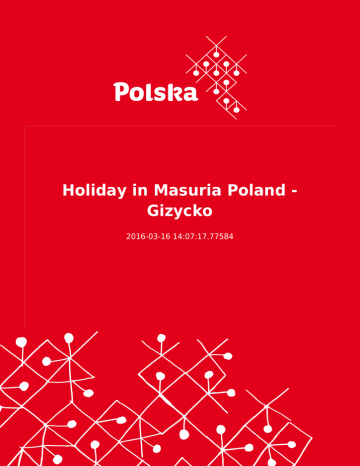 Holiday in Masuria Poland Gizycko 2016-03-16 14:07:17.77584 2 Esta oferta no constituye información comercial Adres instytucji/firmy ogłaszającej ofertę Camping Echo 11-513 Rydzewo . Mazurska 48 . Poland Persona de contacto Bartosz Kozicki [email protected] Tel: http://www.campingecho.pl Descripción de la orden We would like to invite you to enjoy a restful stay at our campsite. You are sure to experience a unique family atmosphere, peace and quiet in extremely attractive surroundings. Campsite Echo is situated in the most beautiful spot on the lake Niegocin, which makes it an ideal place from which you can make short trips to Giżycko, Mikołajki, Ryn and perhaps go on a boat trip on the Great Masurian Lakes or go canoeing down the river Krutynia. Nabywcy z zagranicy ● ● ● ● ● ● Afganistan Albania Algieria Angola Anguilla Antigua i Barbuda 3 ● ● ● ● ● ● ● ● ● ● ● ● ● ● ● ● ● ● ● ● ● ● ● ● ● ● ● ● ● ● ● ● ● ● ● ● ● ● ● Arabia Saudyjska Argentyna Armenia Aruba Australia Austria Azerbejdżan Azory Bahamy Bahrajn Bangladesz Barbados Belgia Belize Benin Bermudy Bhutan Białoruś Boliwia Bonaire, Sint Eustatius i Saba Bośnia i Hercegowina Botswana Brazylia Brytyjskie Terytorium Oceanu Indyjskiego Brytyjskie Wyspy Dziewicze Bułgaria Burkina Faso Burundi Chile Chiny Chorwacja Curaçao Cypr Czad Czarnogóra Czechy Dania Demokratyczna Republika Konga Dominika 4 ● ● ● ● ● ● ● ● ● ● ● ● ● ● ● ● ● ● ● ● ● ● ● ● ● ● ● ● ● ● ● ● ● ● ● ● ● ● ● Dominikana Dżibuti Egipt Ekwador Erytrea Estonia Etiopia Falklandy Fidżi Filipiny Finlandia Francja Gabon Gambia Georgia Południowa i Sandwich Południowy Ghana Gibraltar Grecja Grenada Grenlandia Gruzja Guam Guernsey Gujana Gujana Francuska Gwadelupa Gwatemala Gwinea Gwinea Bissau Gwinea Równikowa Haiti Hiszpania Honduras Hongkong Indie Indonezja Irak Iran Irlandia 5 ● ● ● ● ● ● ● ● ● ● ● ● ● ● ● ● ● ● ● ● ● ● ● ● ● ● ● ● ● ● ● ● ● ● ● ● ● ● ● Irlandia Płn. Islandia Izrael Jamajka Japonia Jemen Jersey Jordania Kajmany Kambodża Kamerun Kanada Katar Kazachstan Kenia Kiribati Kolumbia Komory Kongo Korea Południowa Korea Północna Kostaryka Królestwo Niderlandów Księstwo Andory Księstwo Lichtenstein Kuba Kuwejt Laos Lesotho Liban Liberia Libia Litwa Luksemburg Łotwa Macedonia Madagaskar Madera Majotta 6 ● ● ● ● ● ● ● ● ● ● ● ● ● ● ● ● ● ● ● ● ● ● ● ● ● ● ● ● ● ● ● ● ● ● ● ● ● ● ● Makau Malawi Malediwy Malezja Mali Malta Mariany Północne Maroko Martynika Mauretania Mauritius Meksyk Mikronezja Mjanmar Mołdawia Monako Mongolia Montserrat Mozambik Namibia Nauru Nepal Niemcy Niger Nigeria Nikaragua Niue Norfolk Norwegia Nowa Kaledonia Nowa Zelandia Oman Pakistan Palau Palestyna Panama Papua-Nowa Gwinea Paragwaj Peru 7 ● ● ● ● ● ● ● ● ● ● ● ● ● ● ● ● ● ● ● ● ● ● ● ● ● ● ● ● ● ● ● ● ● ● ● ● ● ● ● Pitcairn Polinezja Francuska Polska Portoryko Portugalia Republika Kirgiska Republika Południowej Afryki Republika Środkowoafrykańska Republika Tadżykistanu Republika Zielonego Przylądka Reunion Rosja Rumunia Rwanda Sahara Zachodnia Saint Kitts i Nevis Saint Lucia Saint Vincent i Grenadyny Saint-Barthélemy Saint-Martin Salwador Samoa Samoa Amerykańskie San Marino Sant Pierre i Miquelon Senegal Serbia Seszele Sierra Leone Singapur Sint Maarten Słowacja Słowenia Somalia Srilanka Suazi Sudan Sudan Południowy Sułtanat Brunei 8 ● ● ● ● ● ● ● ● ● ● ● ● ● ● ● ● ● ● ● Surinam Svalbard i Jan Mayen Syria Szwajcaria Szwecja Tajlandia Tajwan Tanzania Tunezja Turcja Uganda Ukraina Urugwaj USA Węgry Wielka Brytania Wietnam Włochy Wybrzeże Kości Słoniowej CPV ● Servicios de esparcimiento, culturales y deportivos Adjuntos Camping Echo.jpg Tipo de oferta venta 9 Fecha límite para la recepción de las ofertas 12.09.2016 Válida desde 16.03.2016 Ramas Turystyka, sport i rekreacja Volumen de producción Posible 400 El comprador extranjero SÍ 10