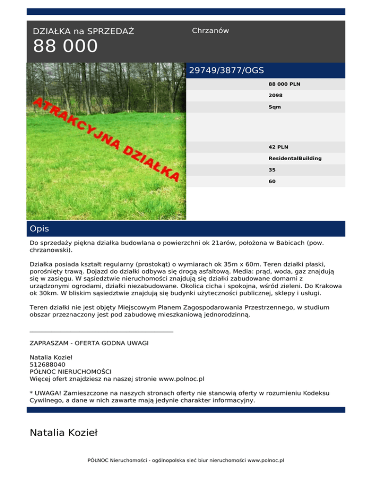 Wydruk oferty PDF - PÓŁNOC Nieruchomości